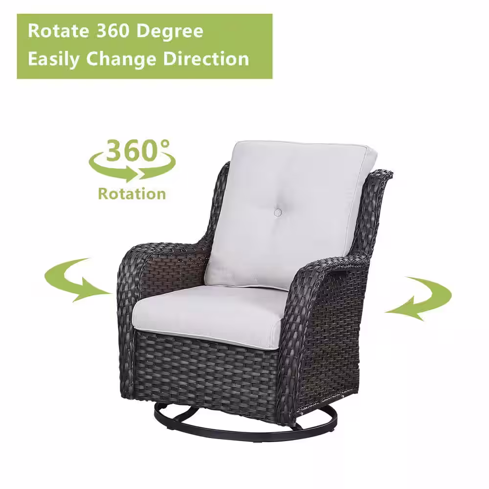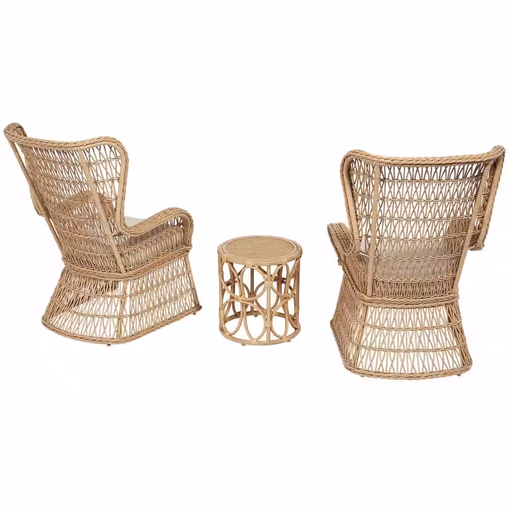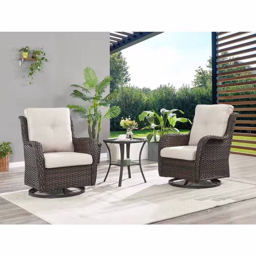 StyleWell Coco Breeze 3-Piece Brown Wicker Outdoor Seating Set with Beige Cushions