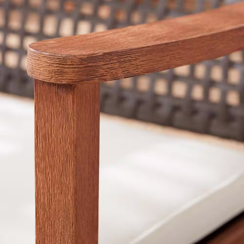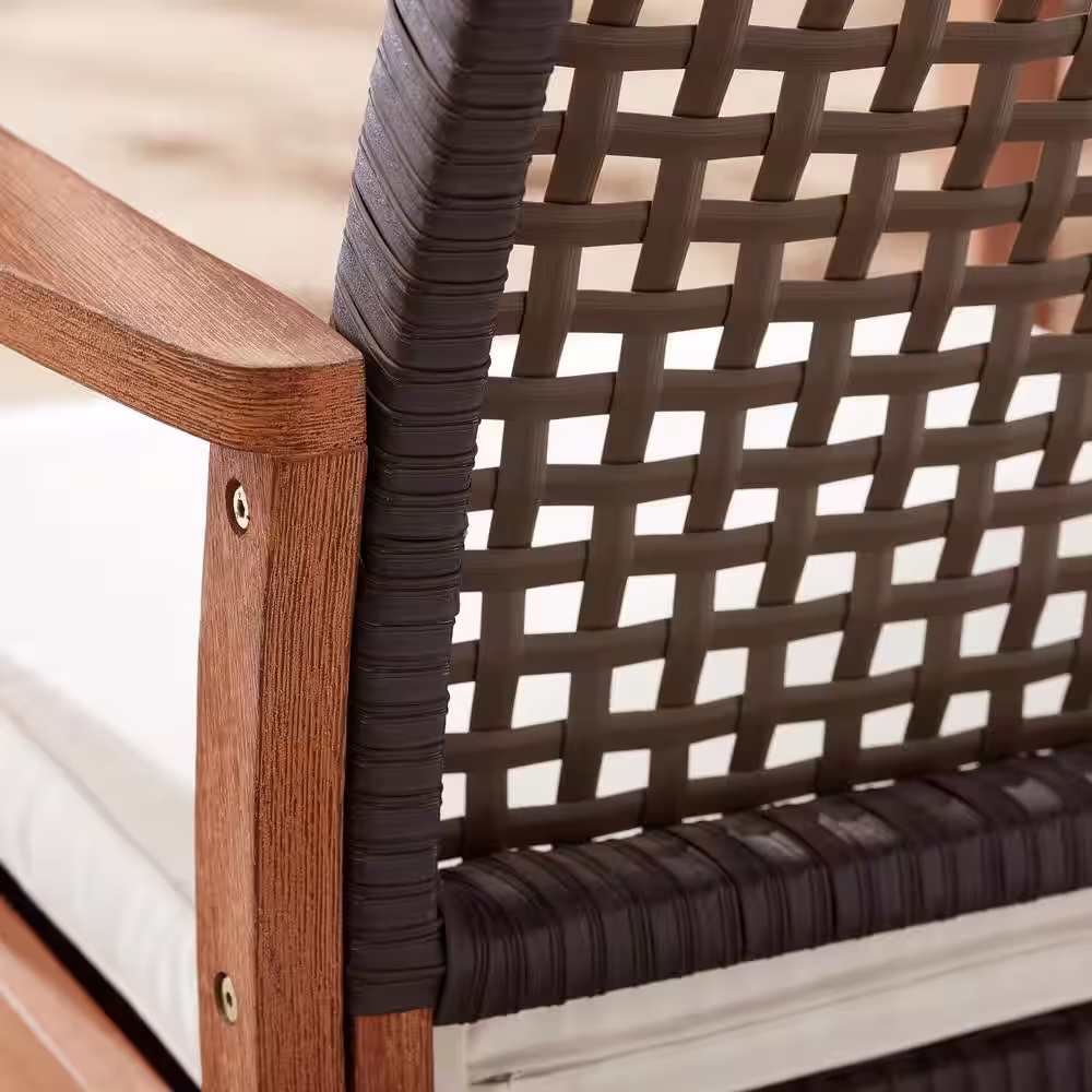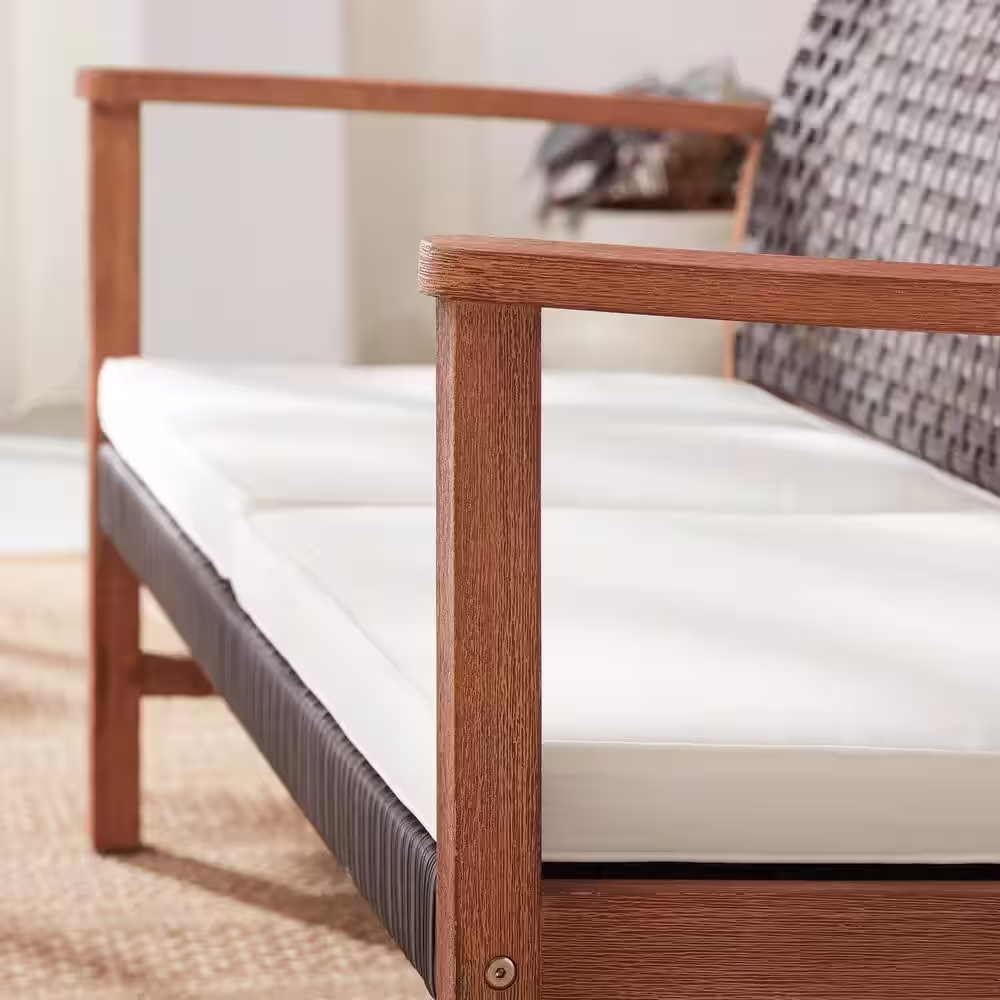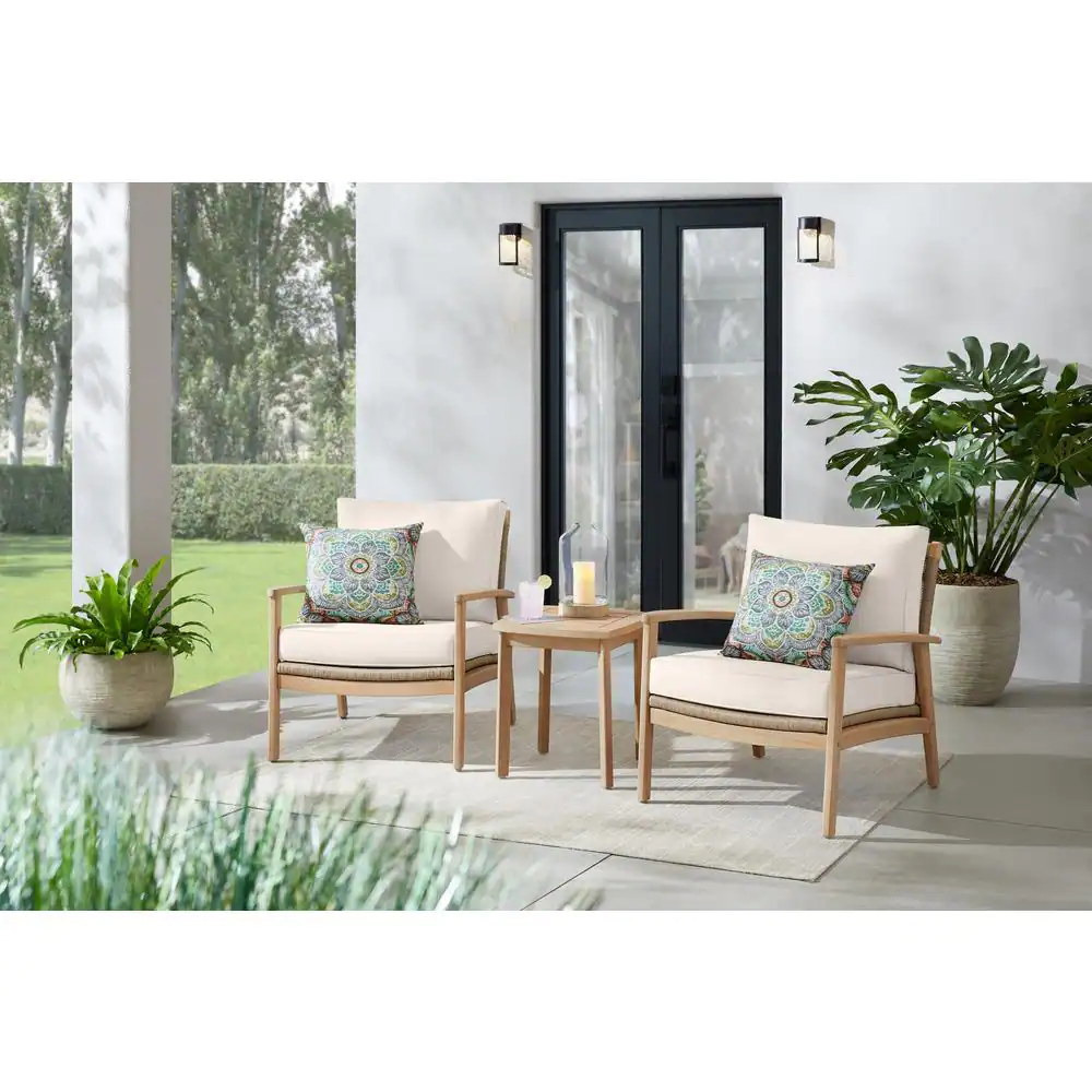 Hampton Bay Laurelwood 3-Piece Eucalyptus Conversation Set with CushionGuard Almond Tan Cushions