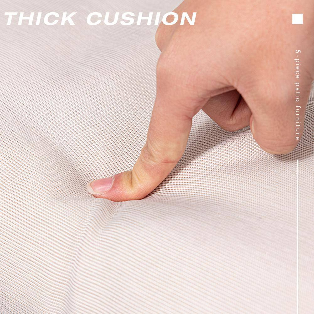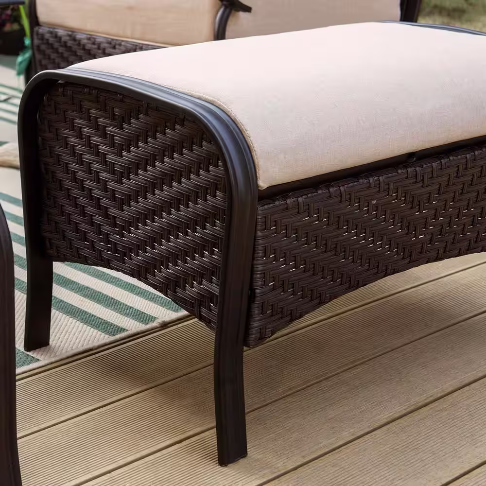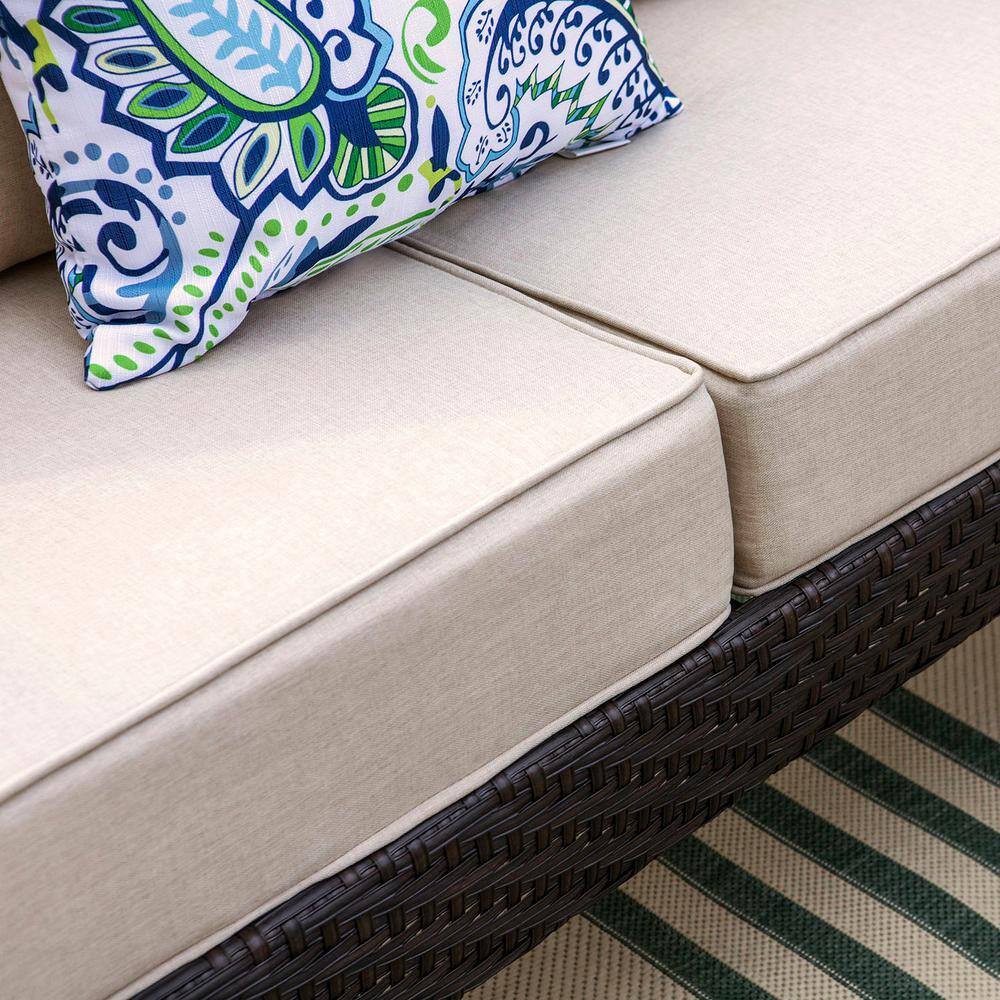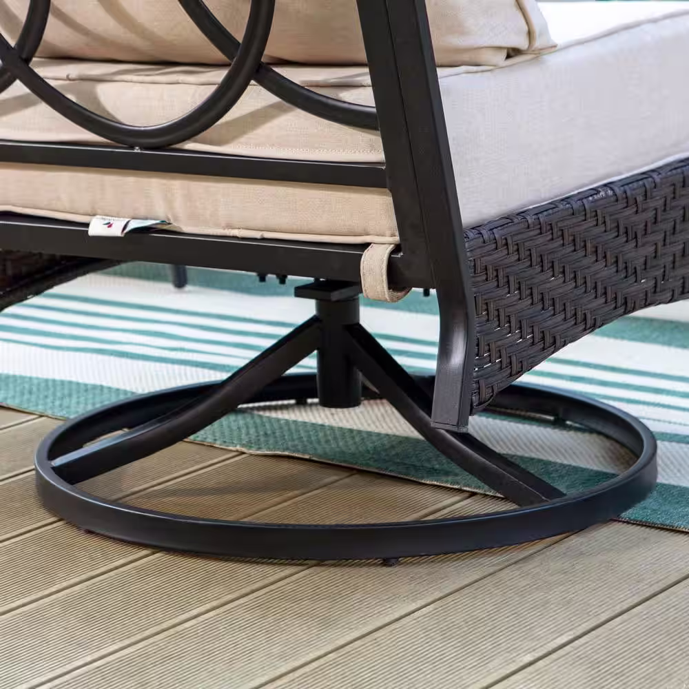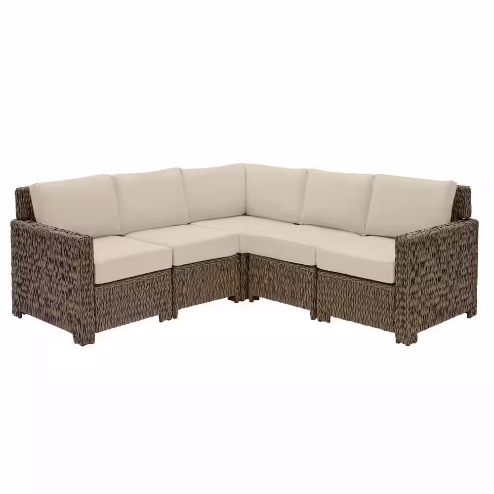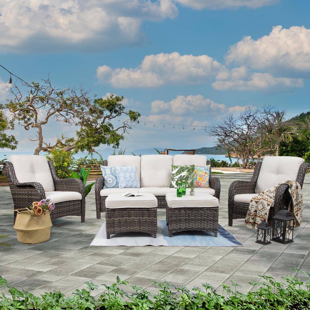 JOYSIDE 5-Piece Wicker Outdoor Patio Seating Conversation Set Sectional Sofa with Beige Cushions