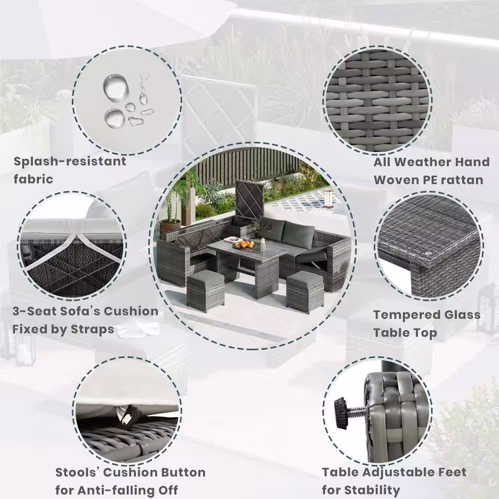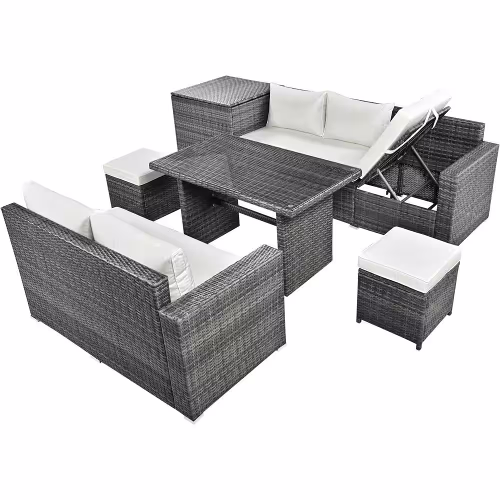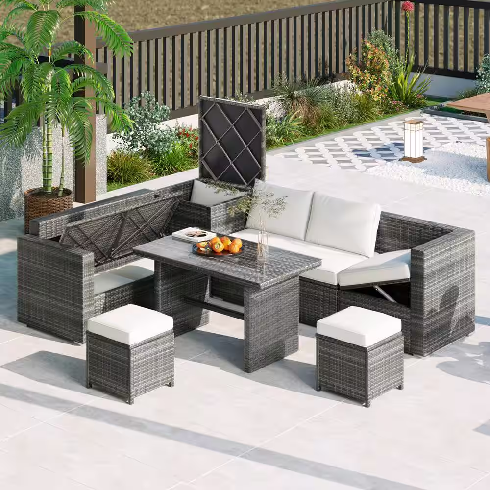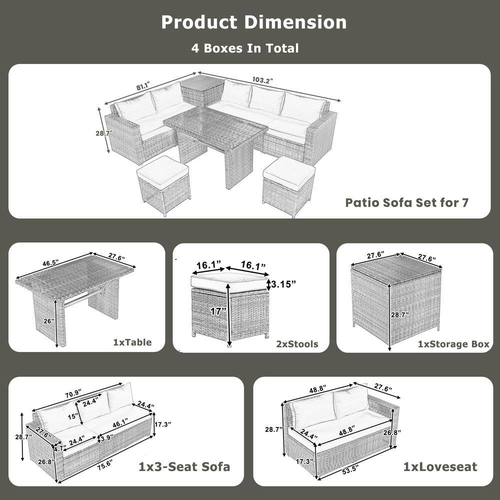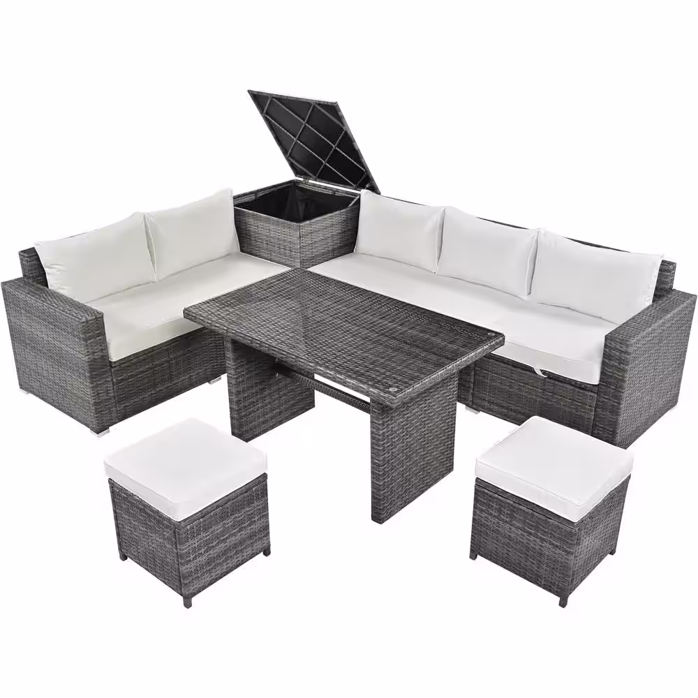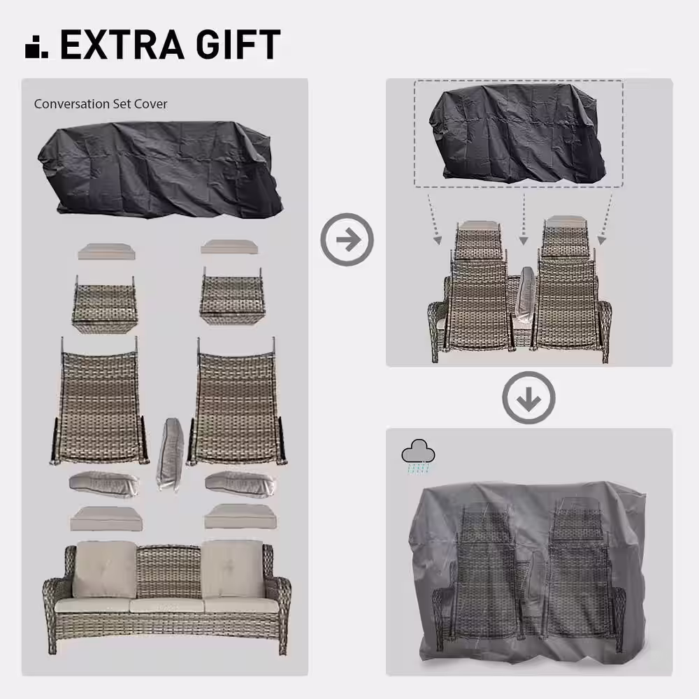 JOYSIDE 5-Piece Wicker Outdoor Patio Seating Conversation Set Sectional Sofa with Beige Cushions