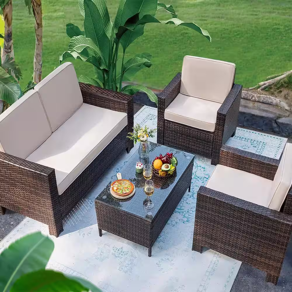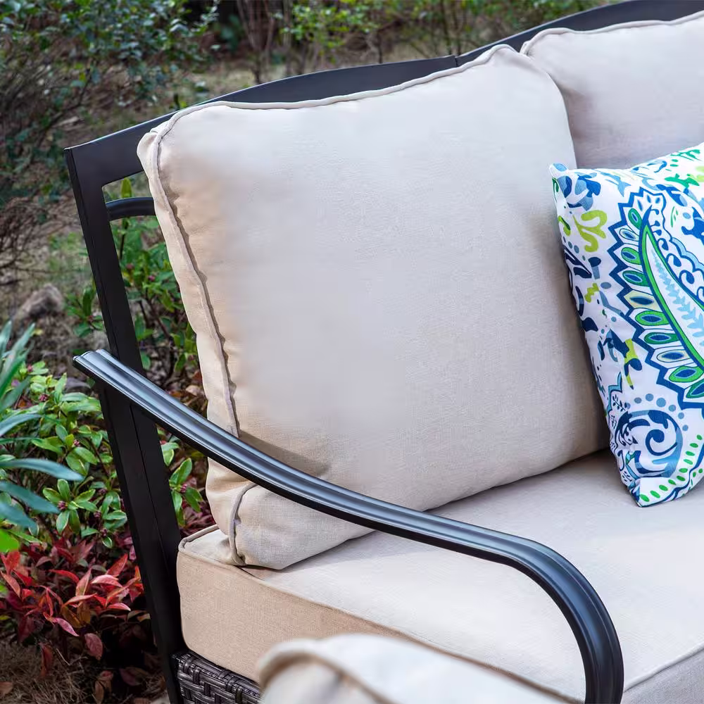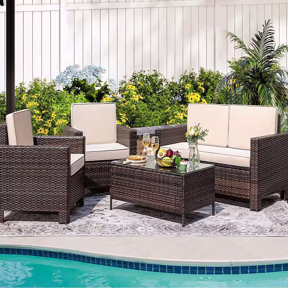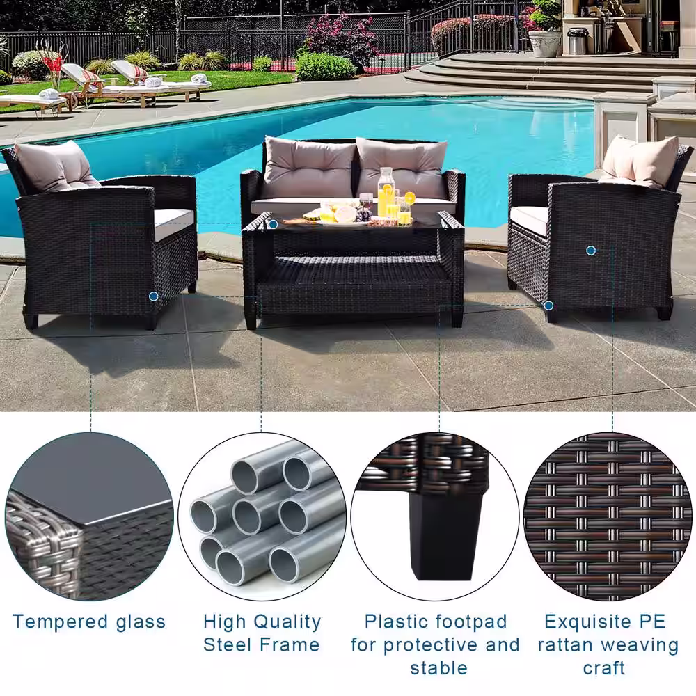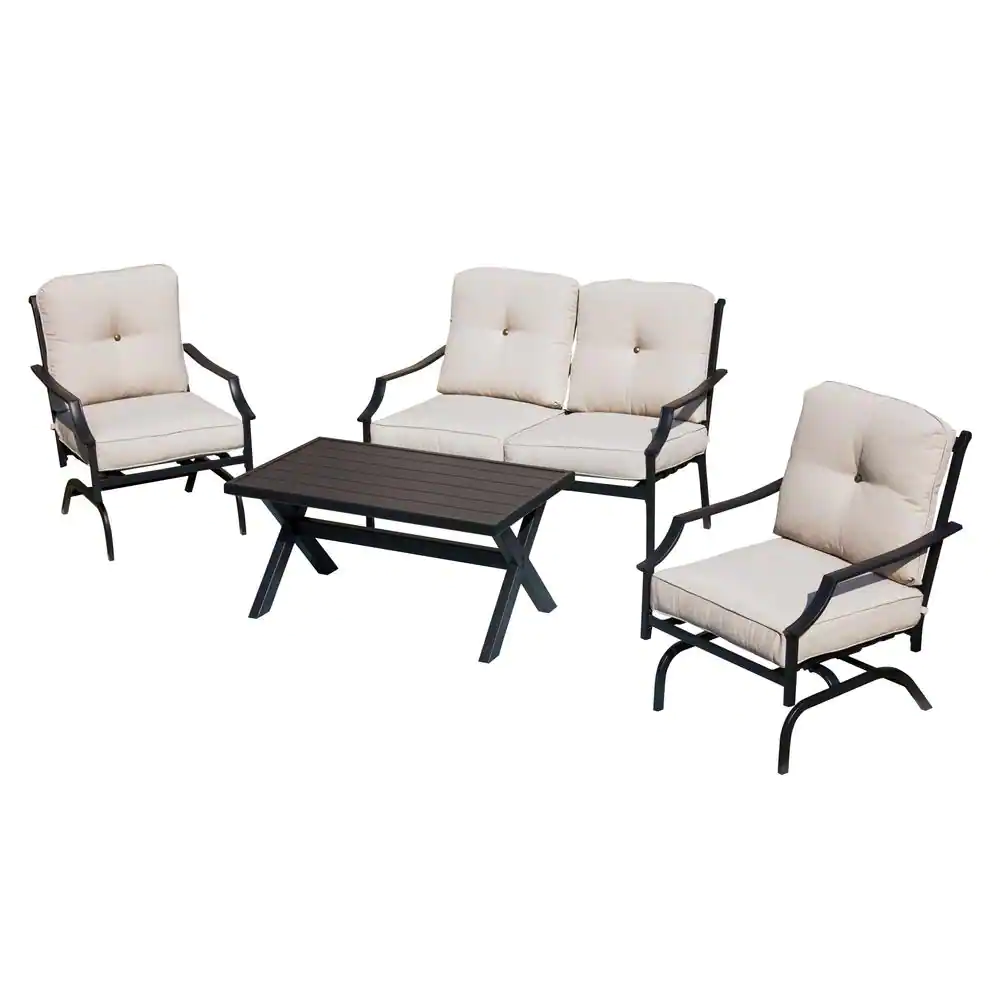 TOP HOME SPACE 4-Piece Metal Patio Conversation Set with Beige Cushions
