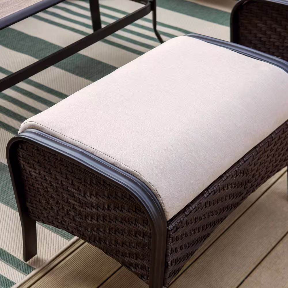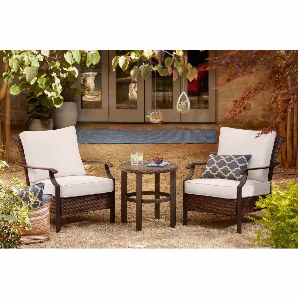 Hampton Bay Harper Creek 3-Piece Brown Steel Outdoor Patio Chair Set with CushionGuard Almond Tan Cushions