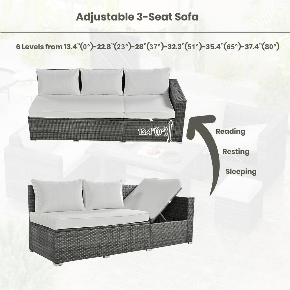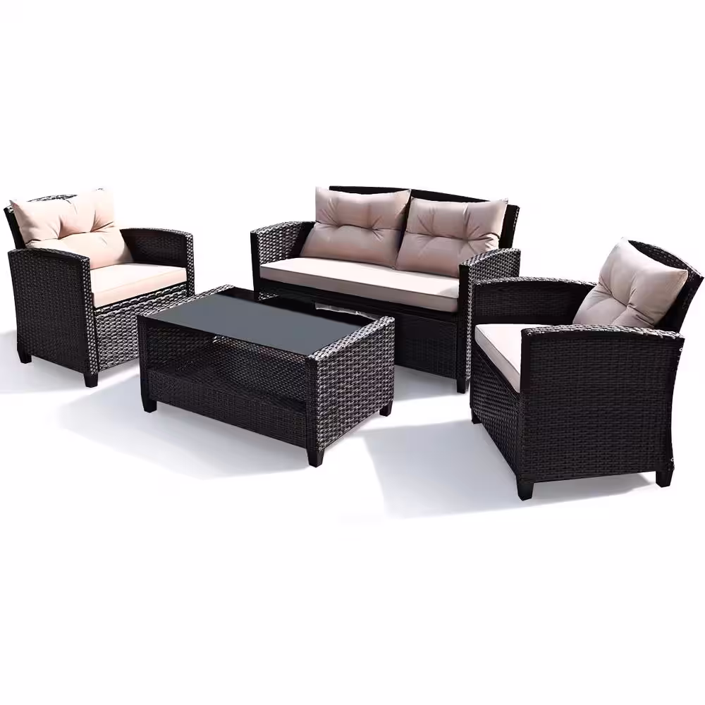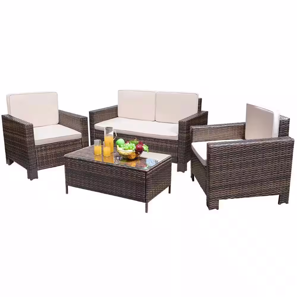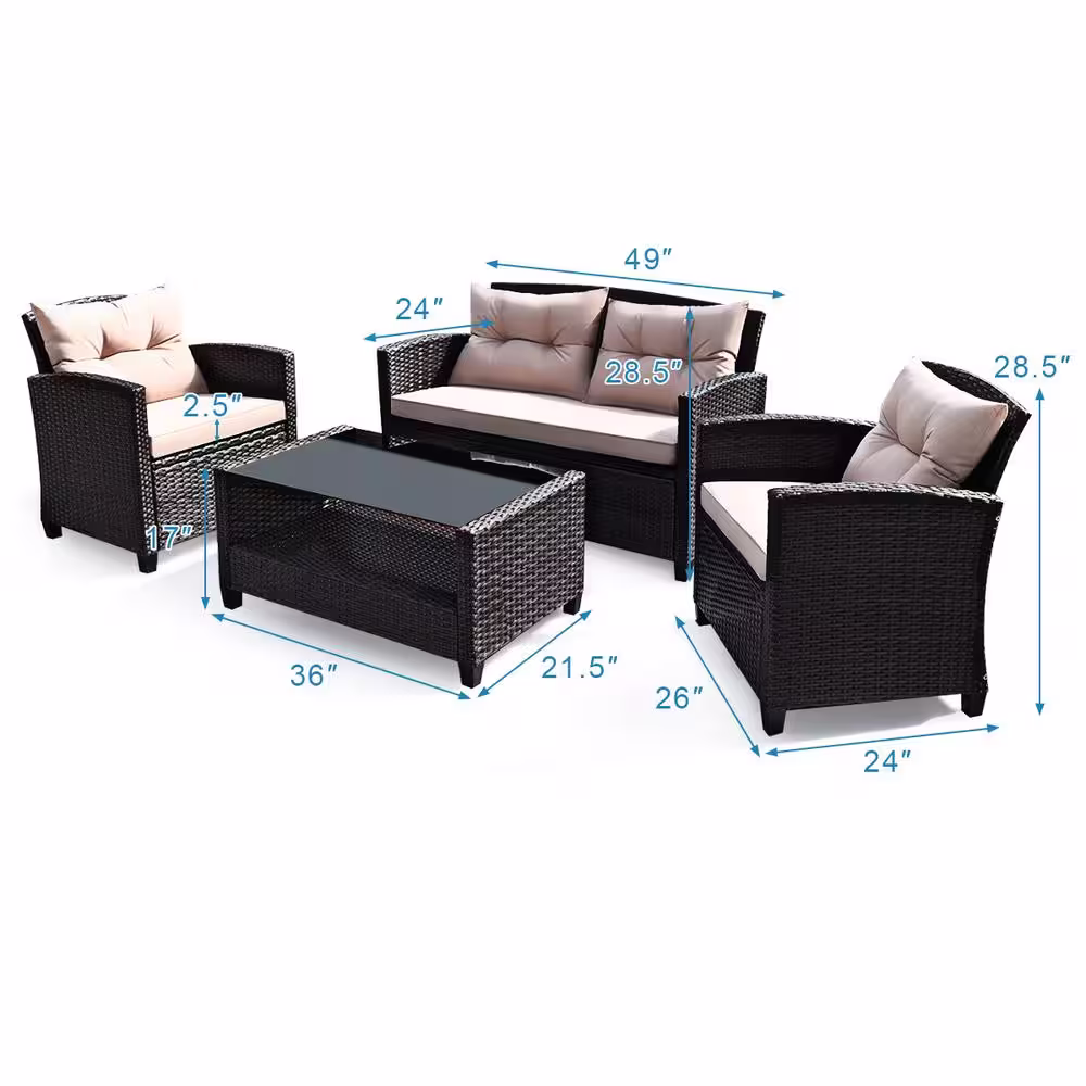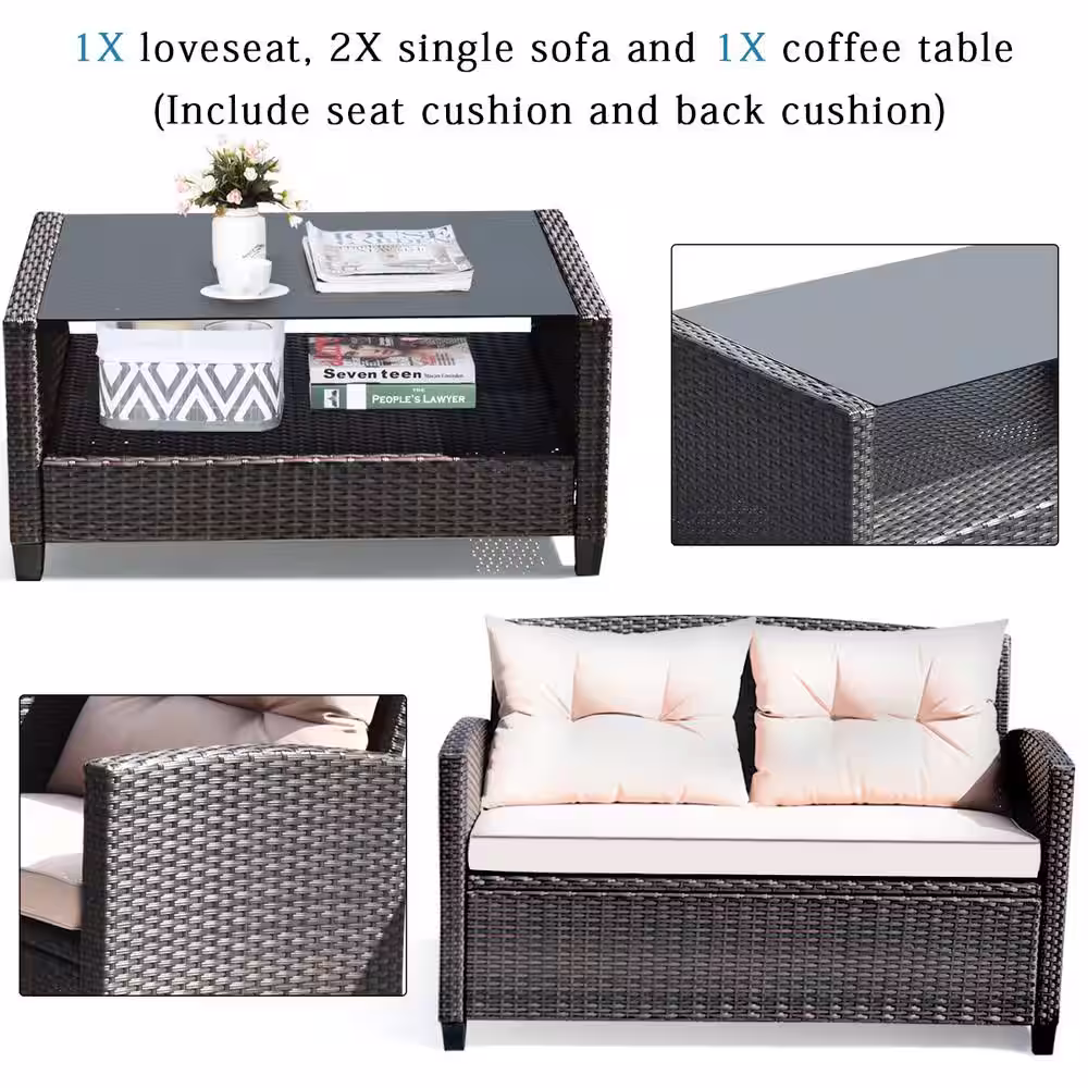 Costway 4-Pieces Wicker Patio Conversation Set Cushioned Sofa Armrest Table with Beige Cushions