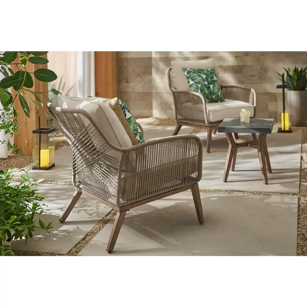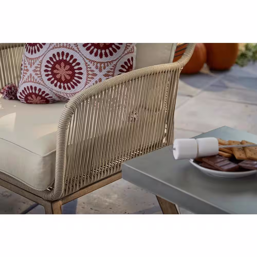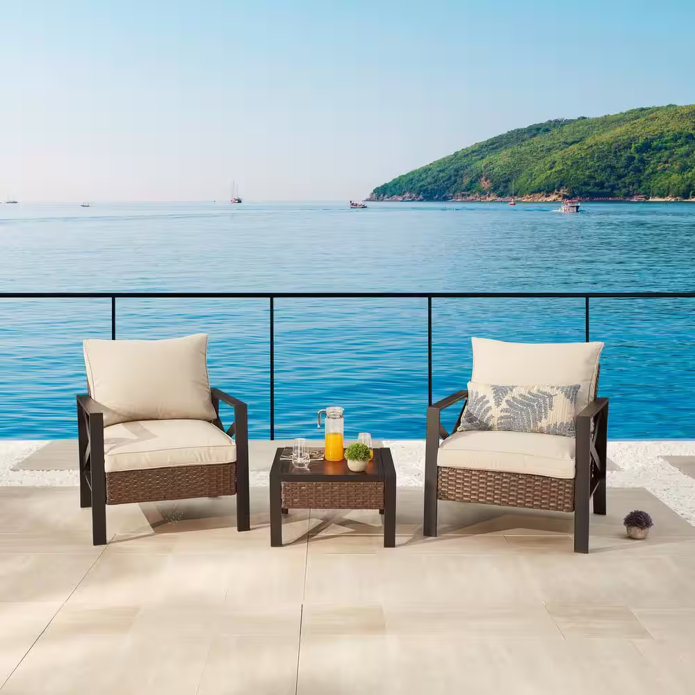 Hampton Bay Haymont 3-Piece Steel Wicker Outdoor Patio Conversion Seating Set with Beige Cushions