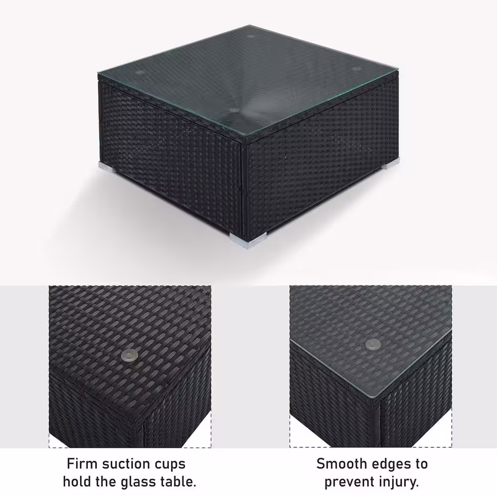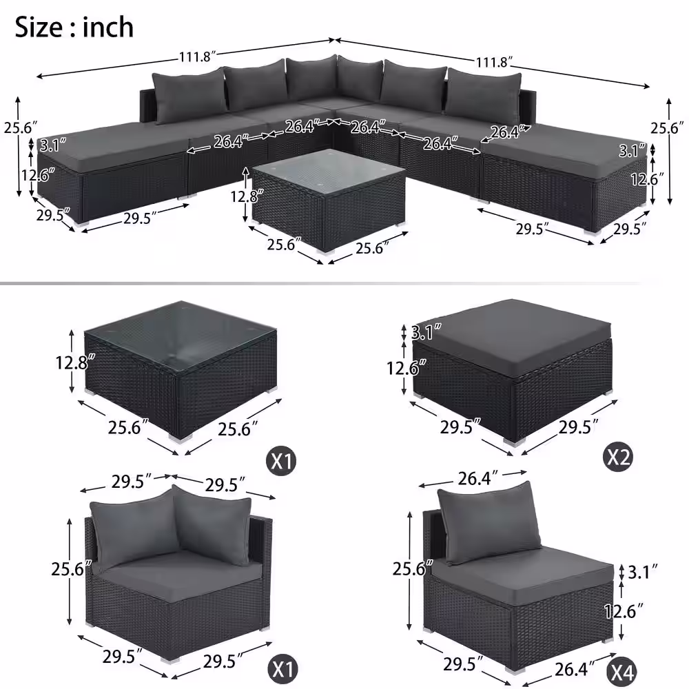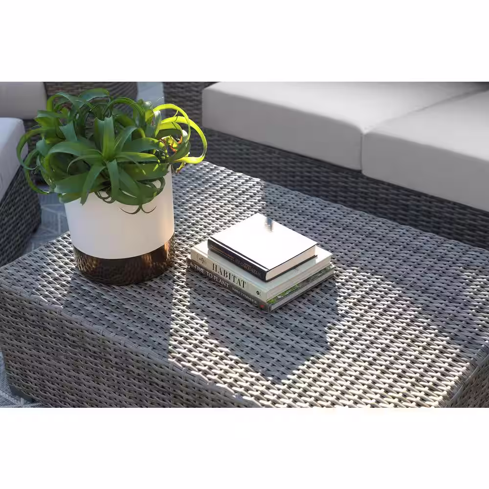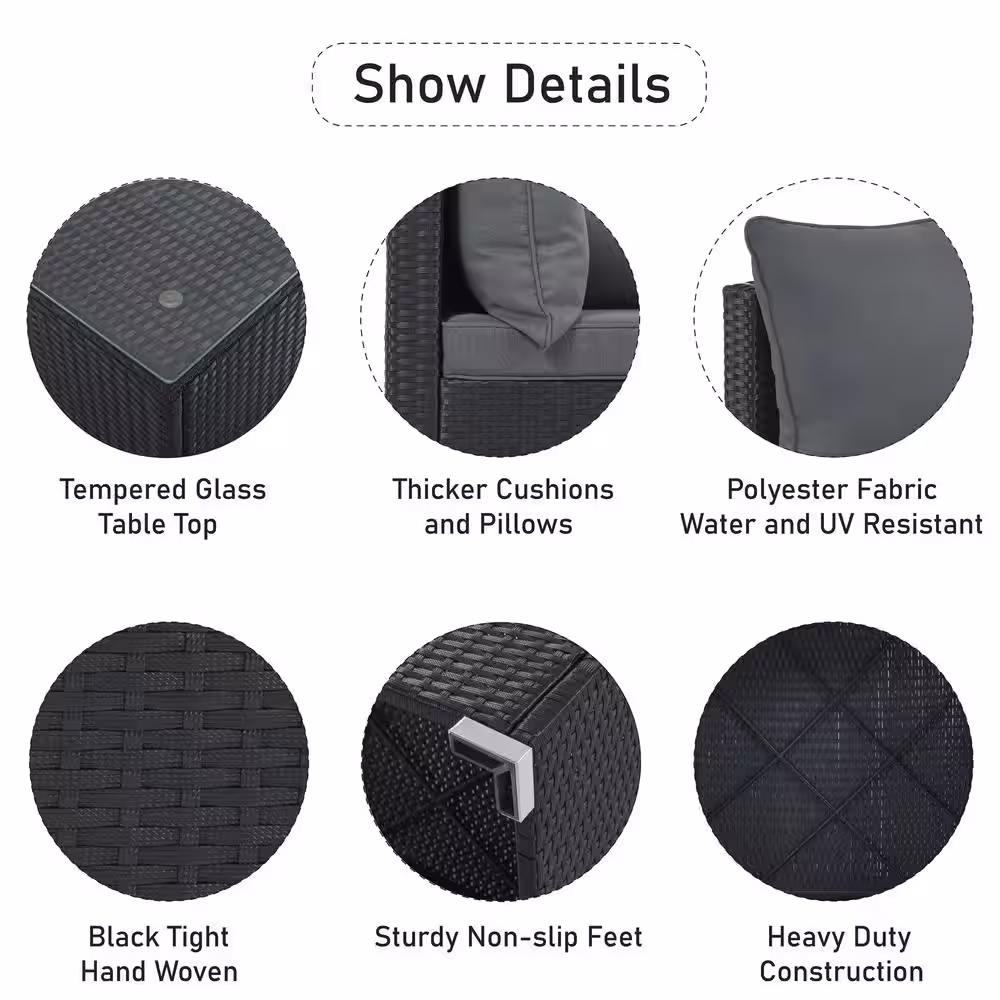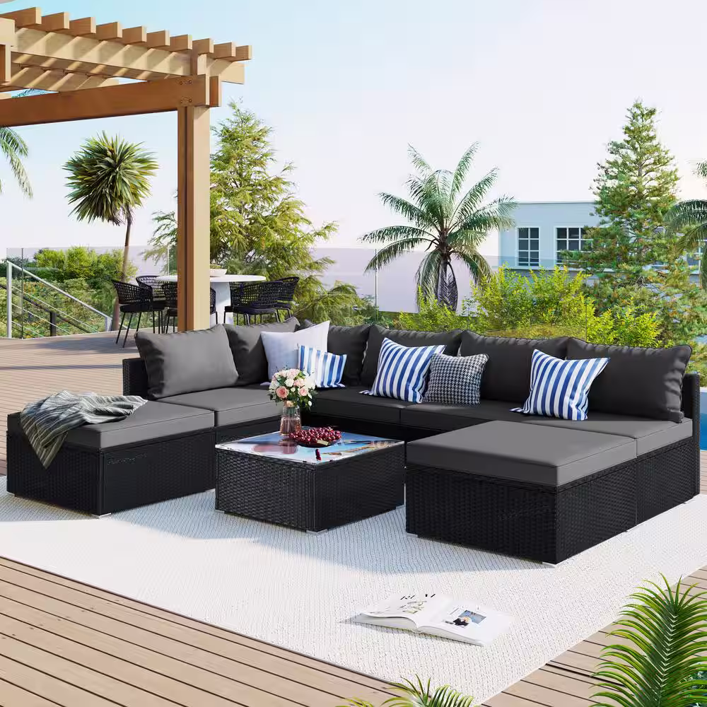 None Black 8-Pieces Patio Wicker Outdoor Conversation Sets with Gray Cushions