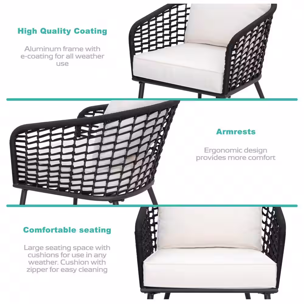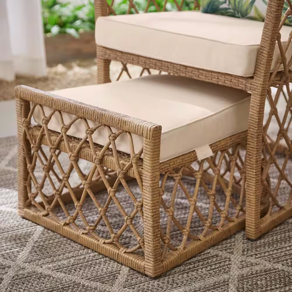 Patio Festival X-Arm 3-Piece Wicker Conversation Set with Beige Cushions