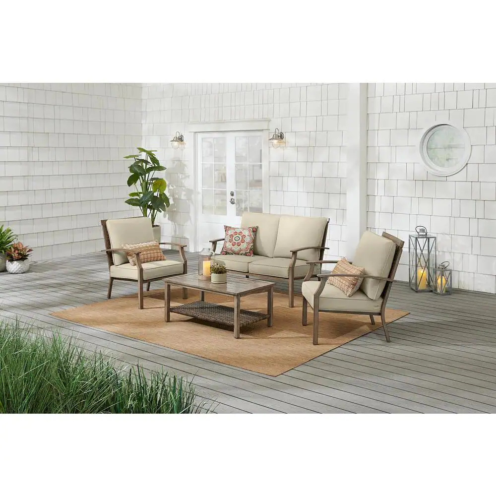 Hampton Bay Long Beach 5-Piece Steel Outdoor Patio Conversation Seating Set with Beige Cushions