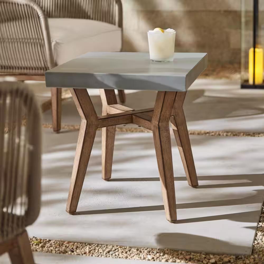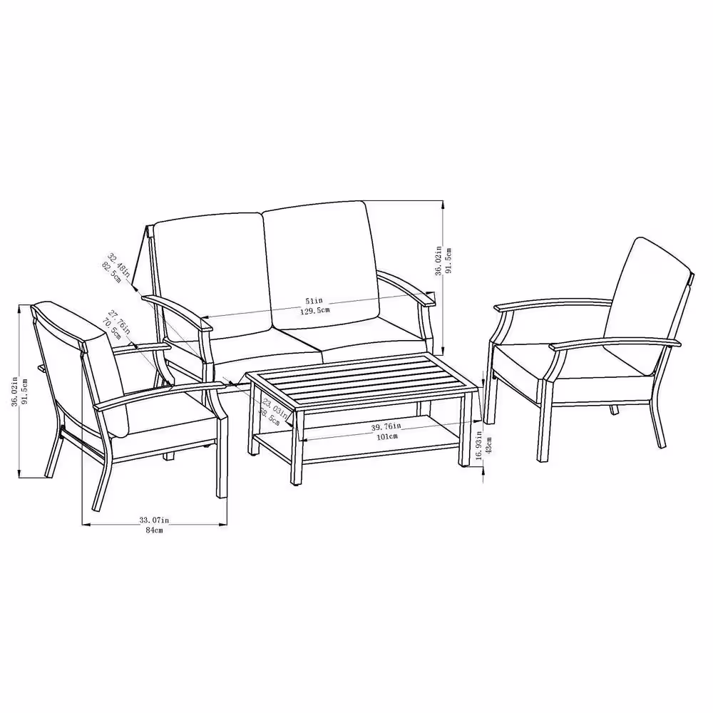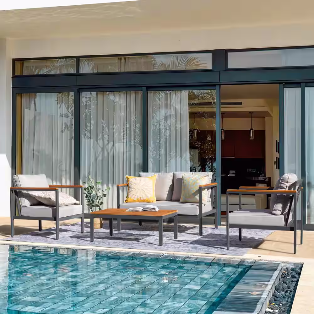 Tozey Chillrest Deluxe 4-Piece Acacia and Steel Patio Conversation Set with Ice Gray Cushion