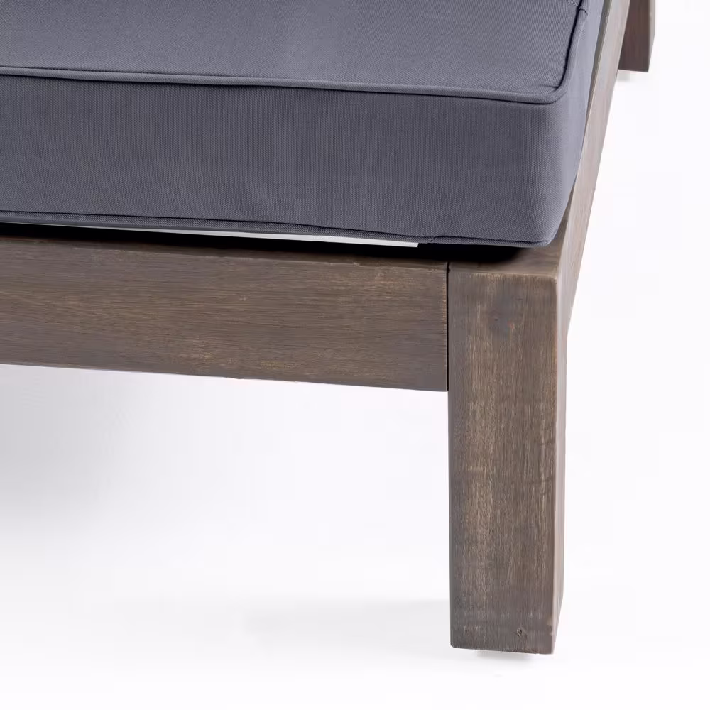 Noble House Oana Grey 9-Piece Wood Patio Conversation Sectional Seating Set with Dark Grey Cushions