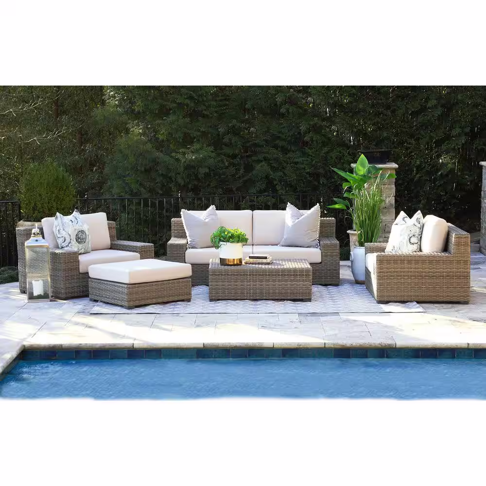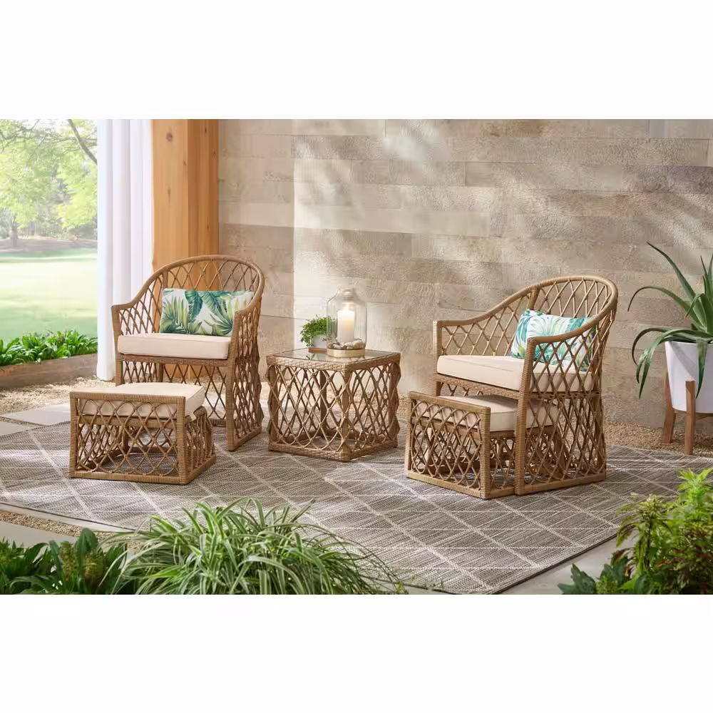 Canopy Oakley 5-Piece Resin Wicker Patio Deep Seating Set with Sunbrella Canvas Flax Cushions