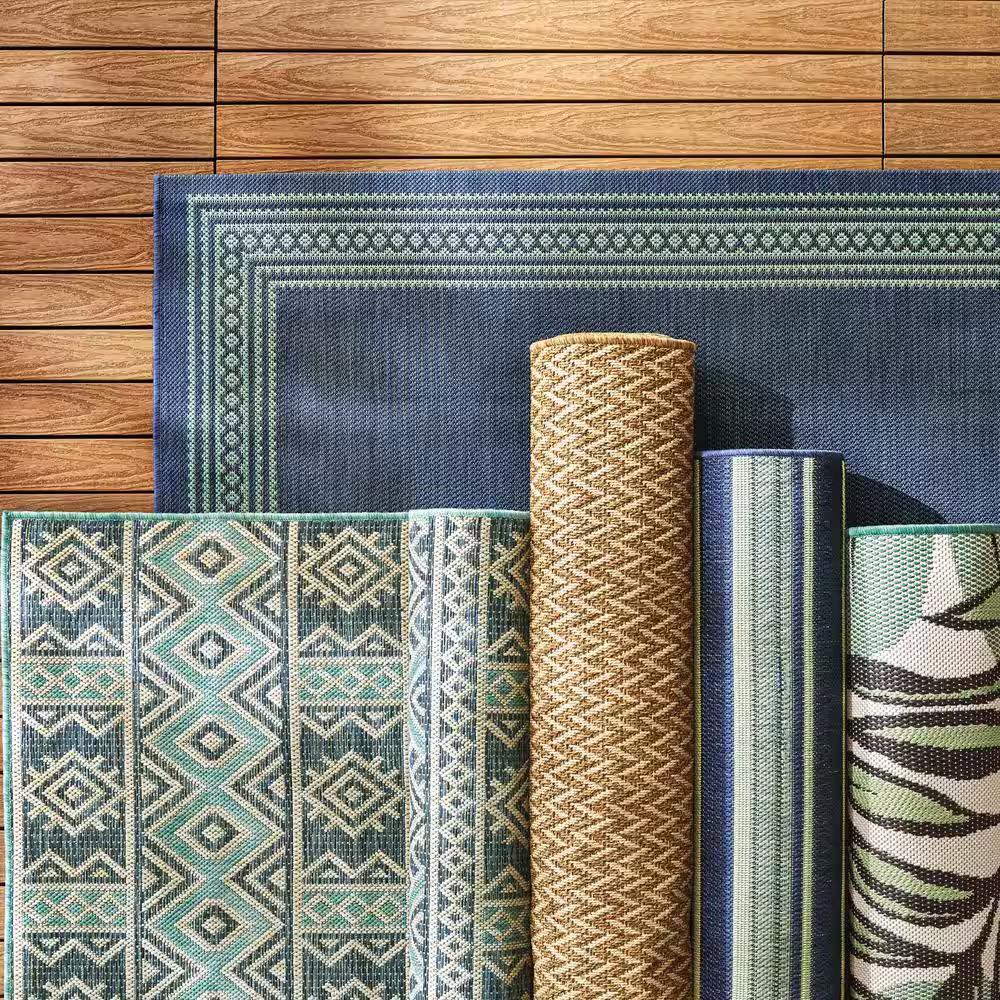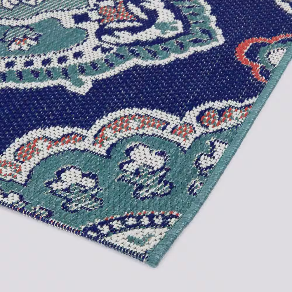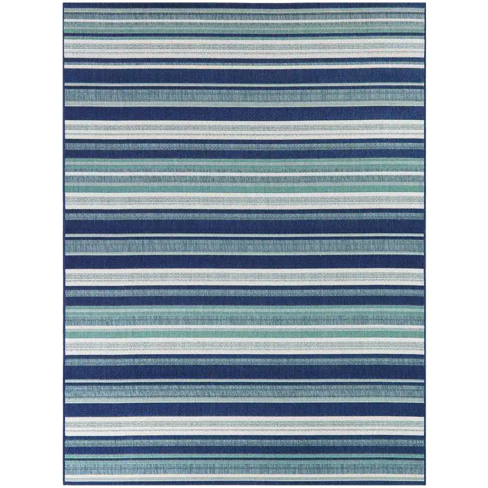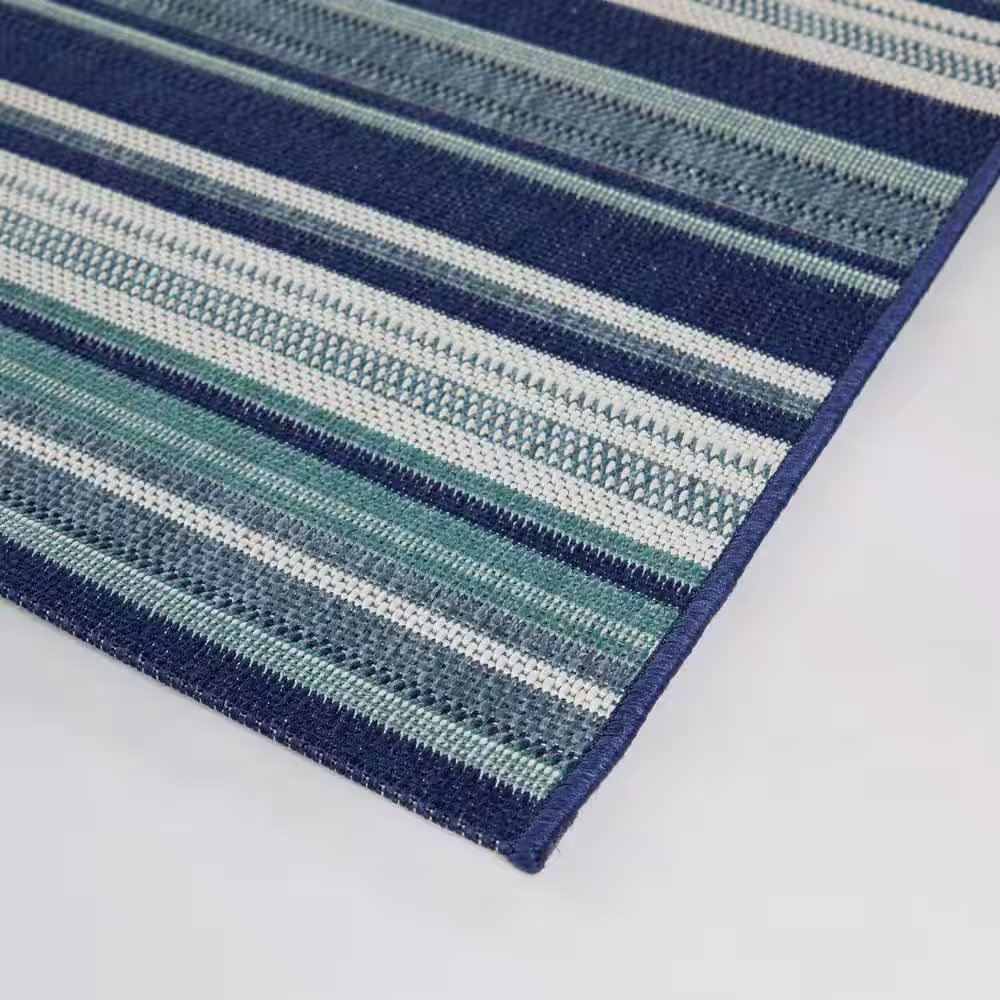 StyleWell Blue/White 5 ft. x 7 ft. Stripes Indoor/Outdoor Patio Area Rug