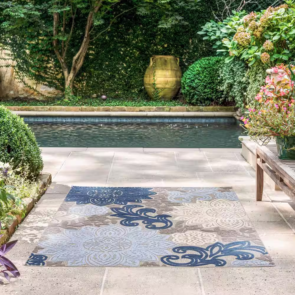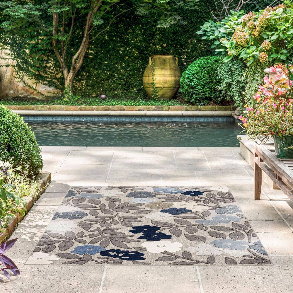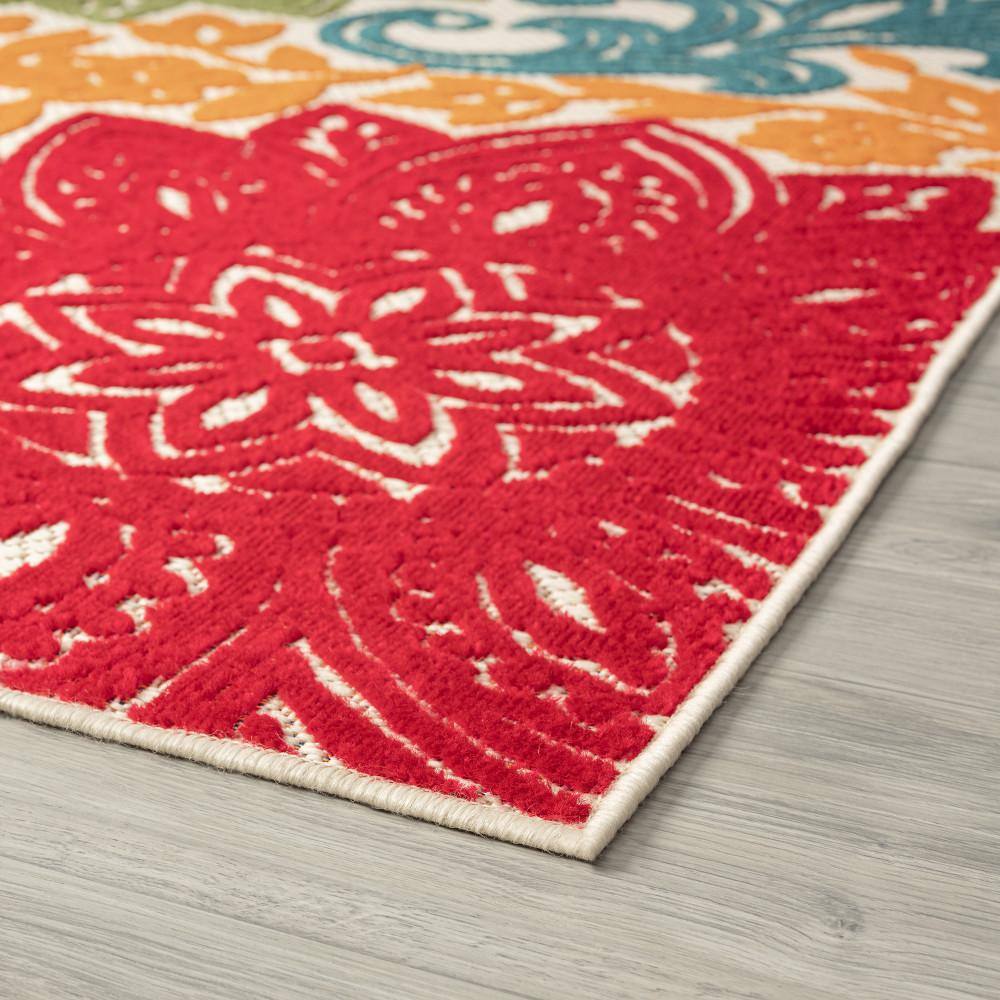 Tayse Rugs Oasis Floral Multi-Color 8 ft. x 10 ft. Indoor/Outdoor Area Rug