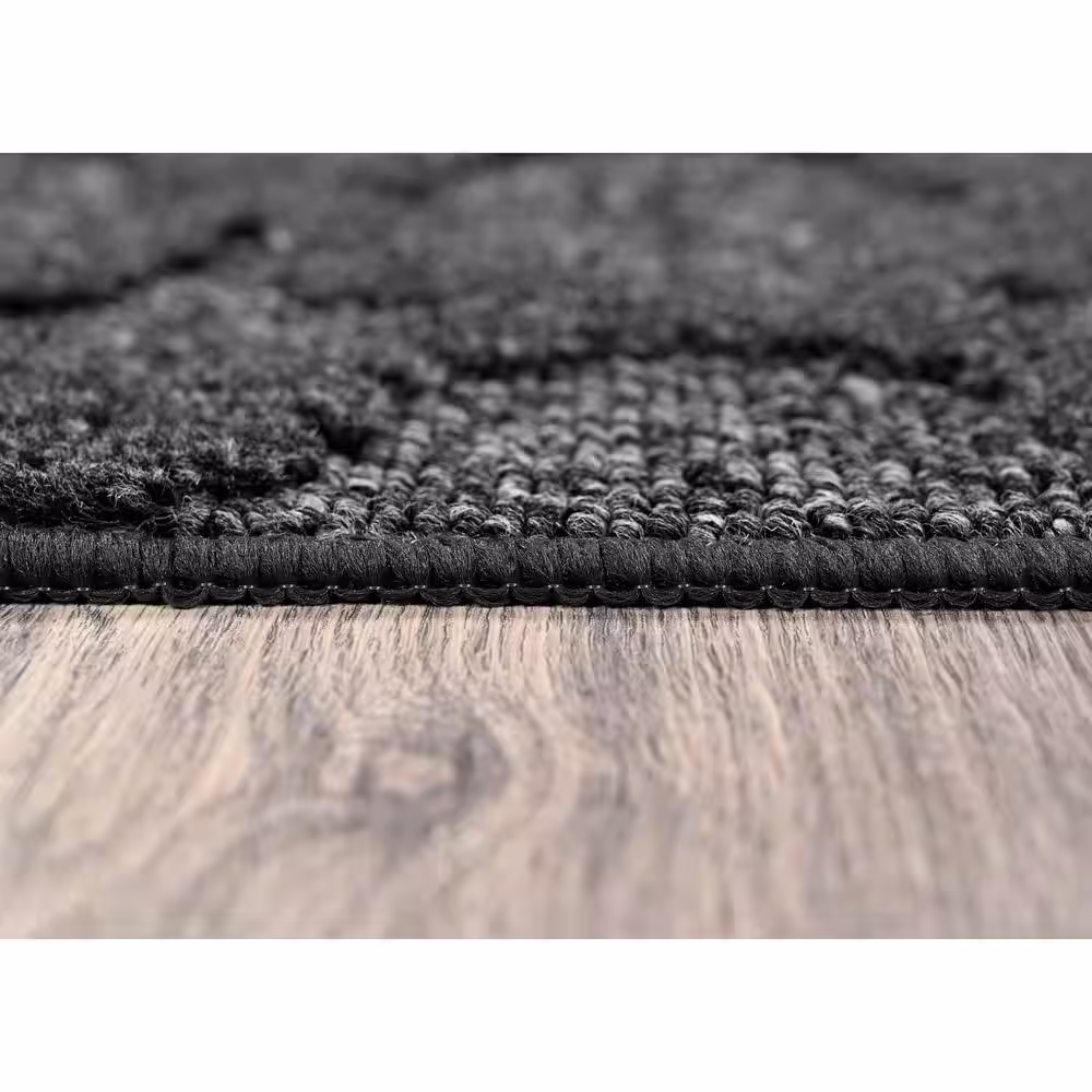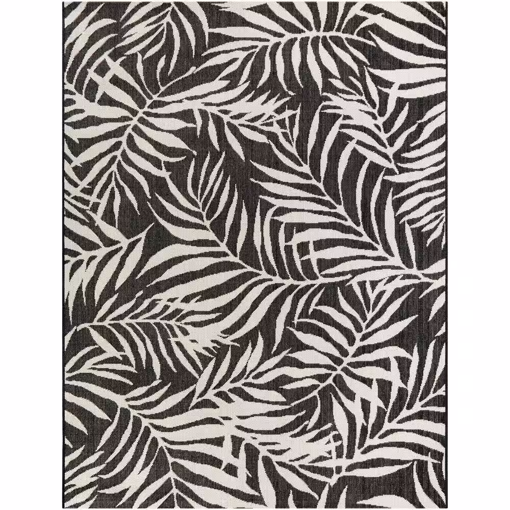Hampton Bay Tropical Palm Leaves Black 5 ft. x 7 ft. Indoor/Outdoor Patio Area Rug
