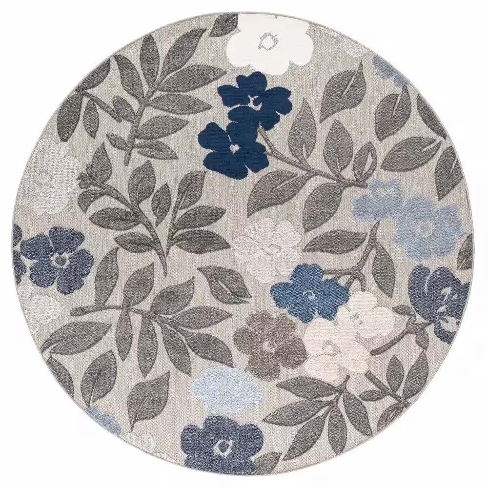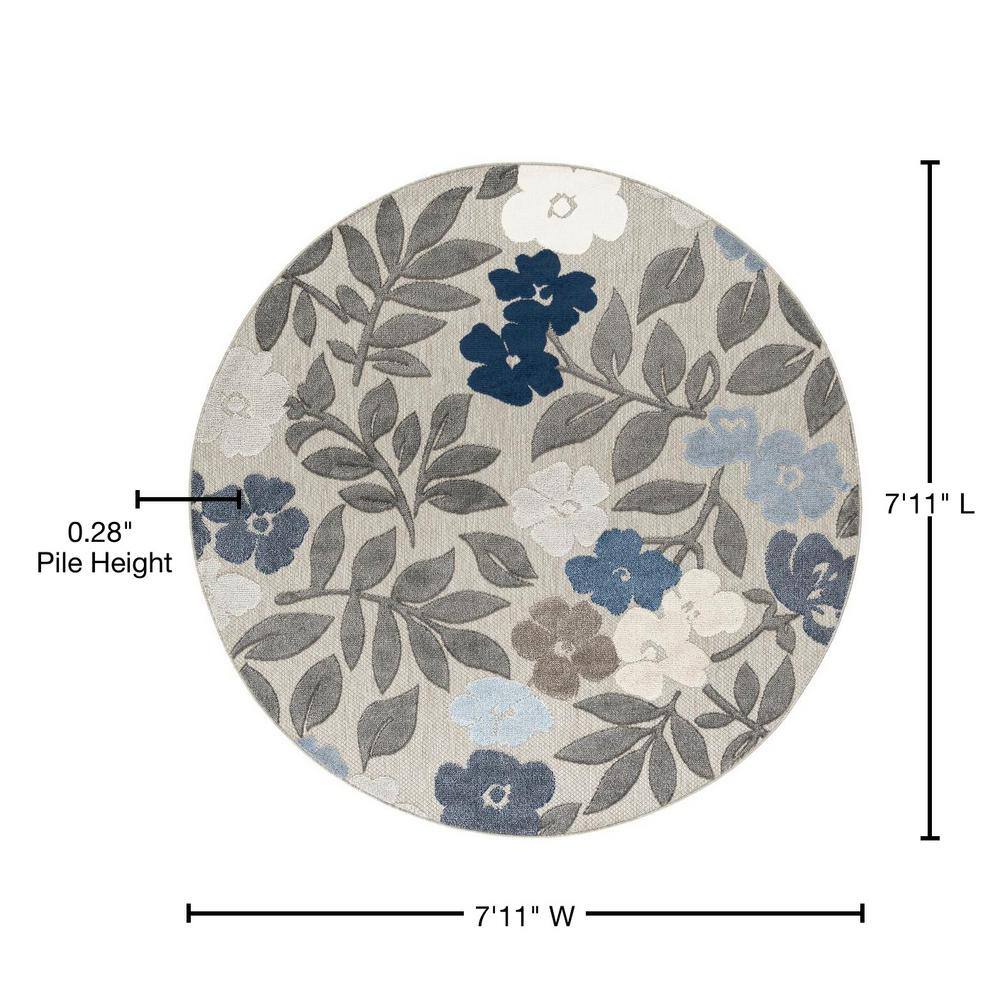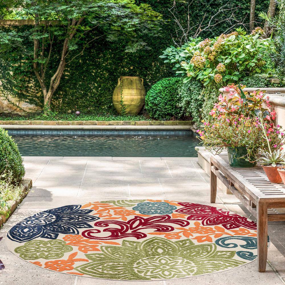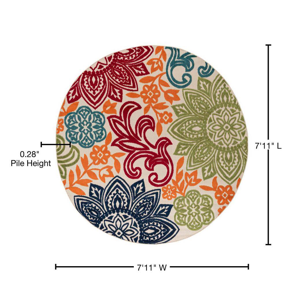 Tayse Rugs Oasis Floral Multi-Color 8 ft. Round Indoor/Outdoor Area Rug