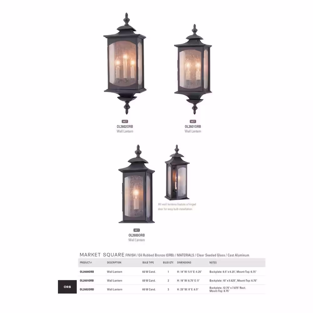 Generation Lighting Market Square 6.75 in. W 2-Light Oil Rubbed Bronze Outdoor 19 in. Wall Lantern Sconce