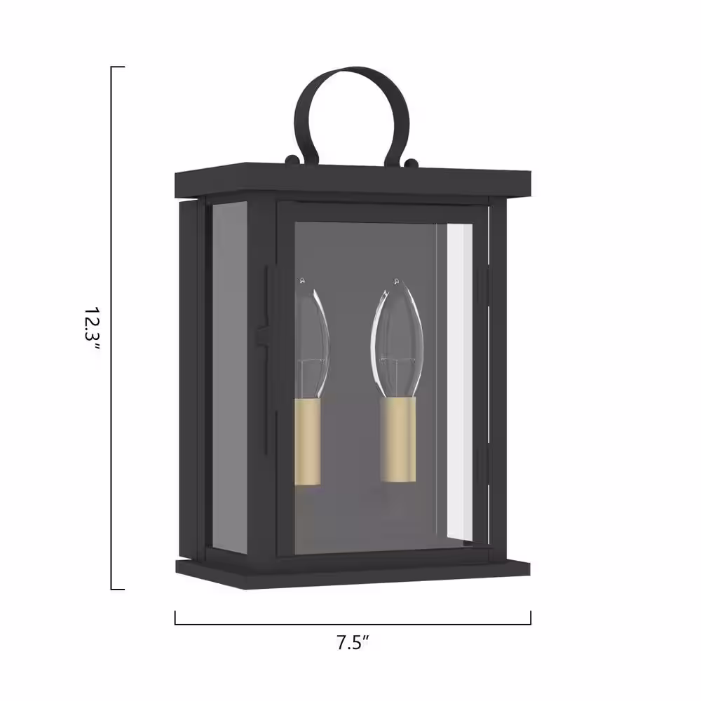 Maxax Montpelier 2-Light Black 12.25 in. H Dusk to Dawn Hardwired Outdoor Wall Lantern Sconce