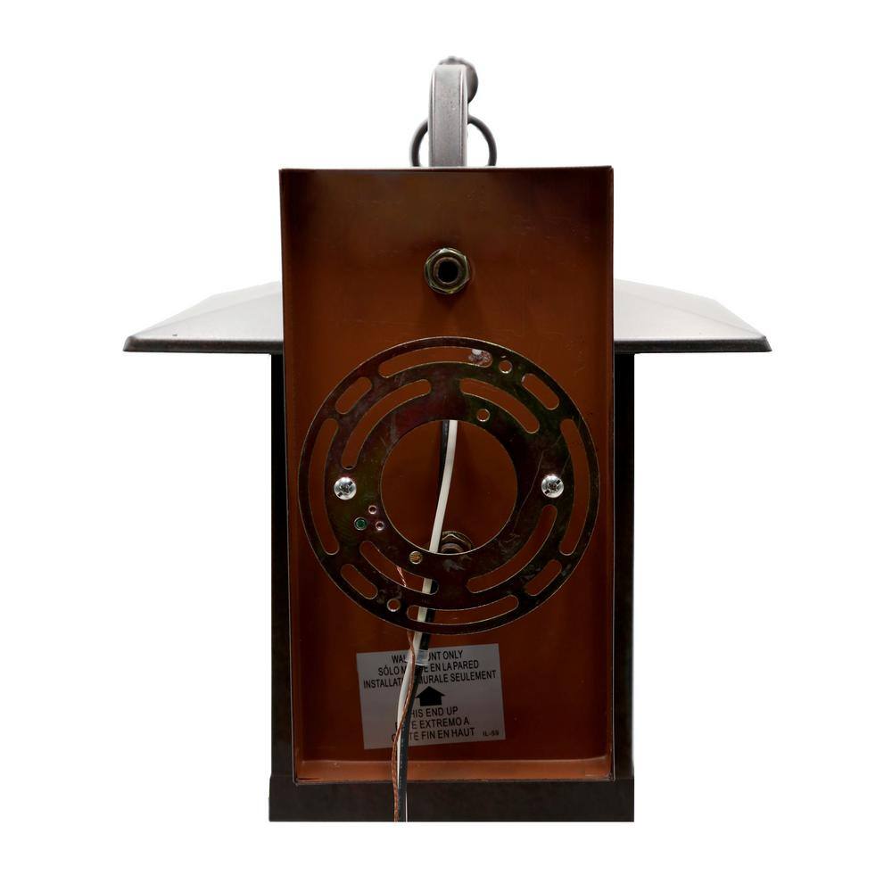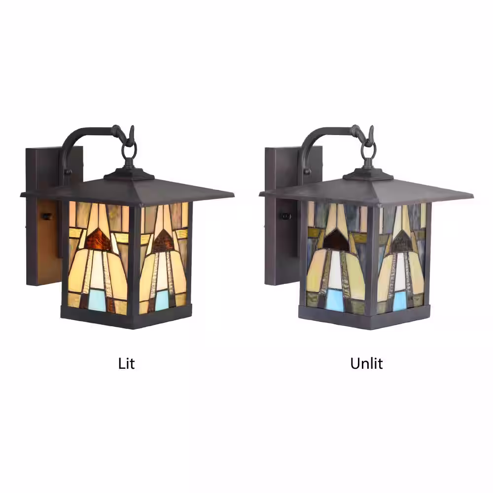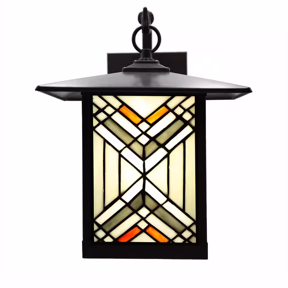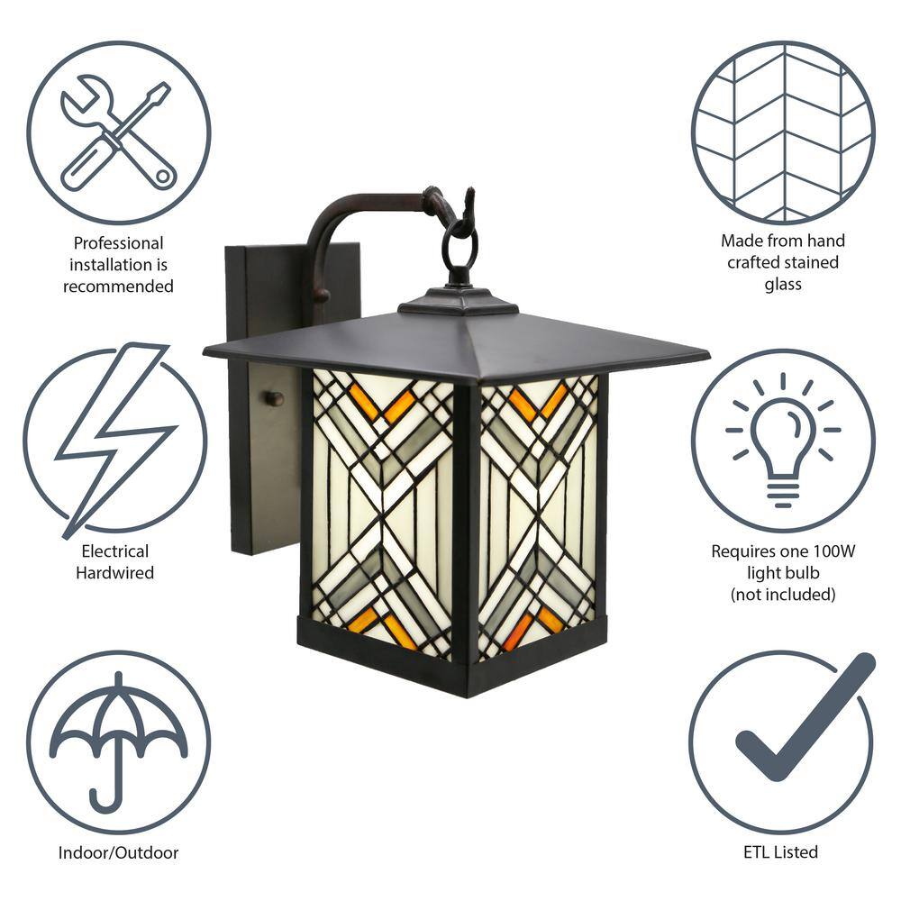 River of Goods Mission 1-Light Oil Rubbed Bronze Hardwired Outdoor Wall Lantern Sconce with Rich Brown Stained Glass