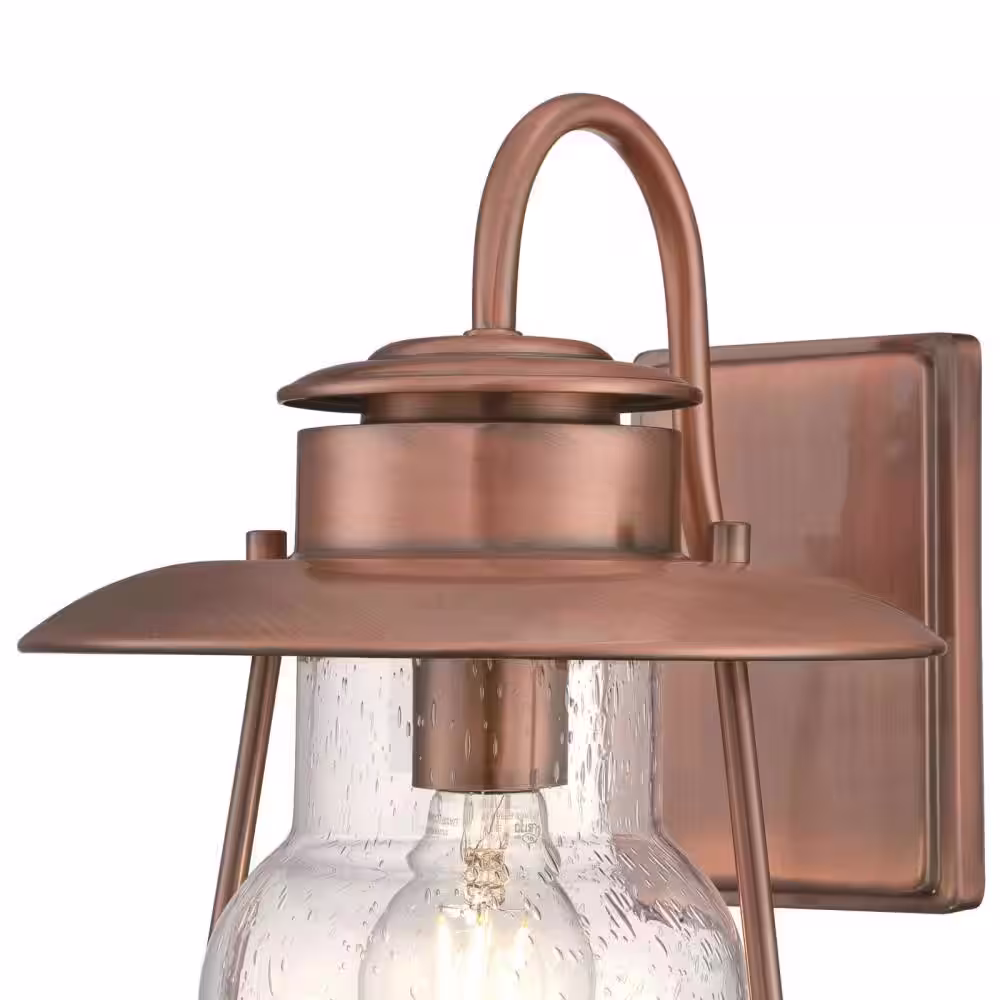 Westinghouse Santa Fe Medium 1-Light Washed Copper Outdoor Wall Mount Lantern with Clear Seeded Glass