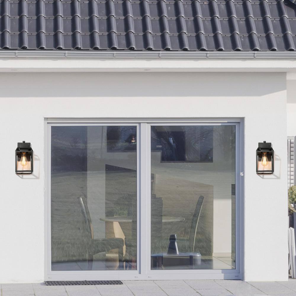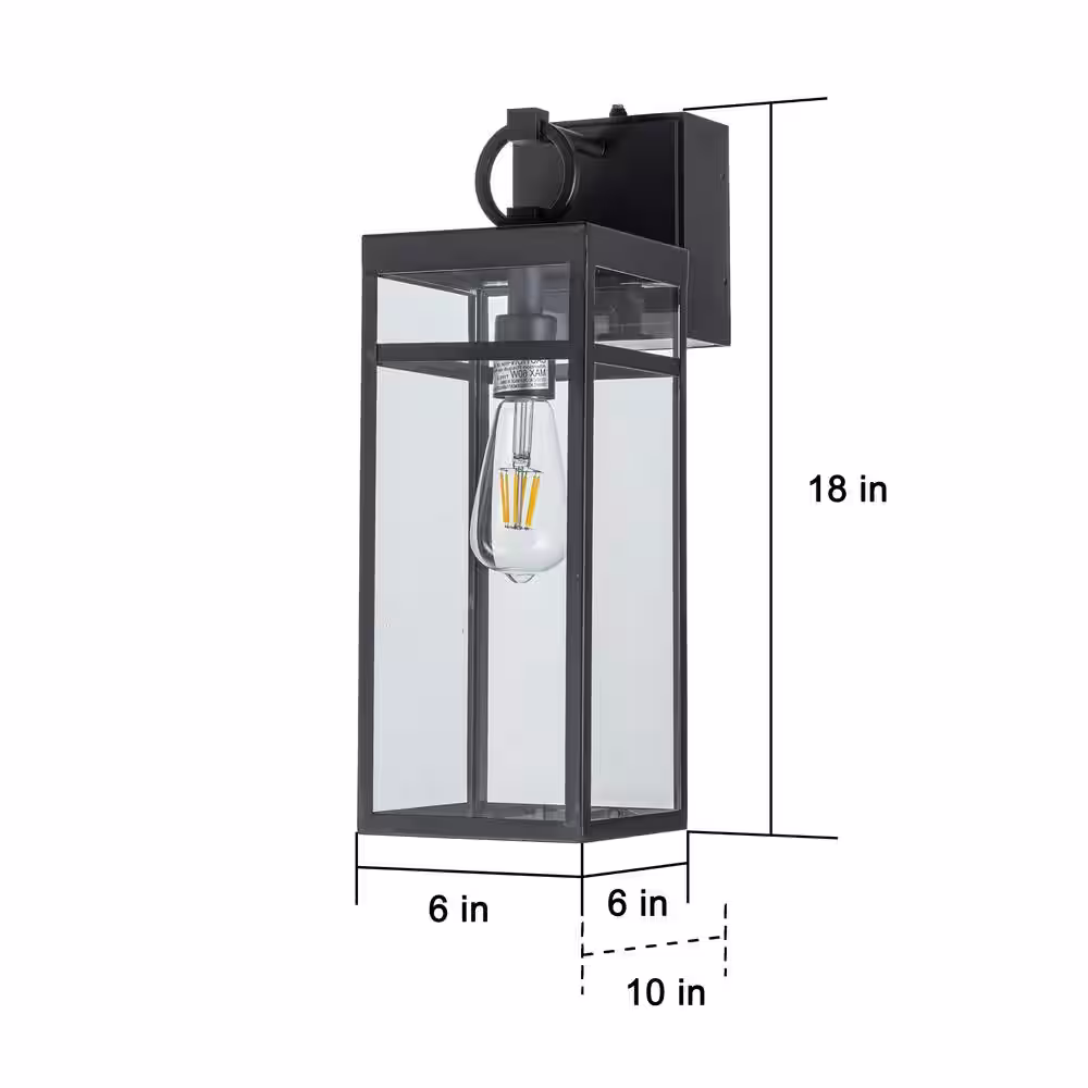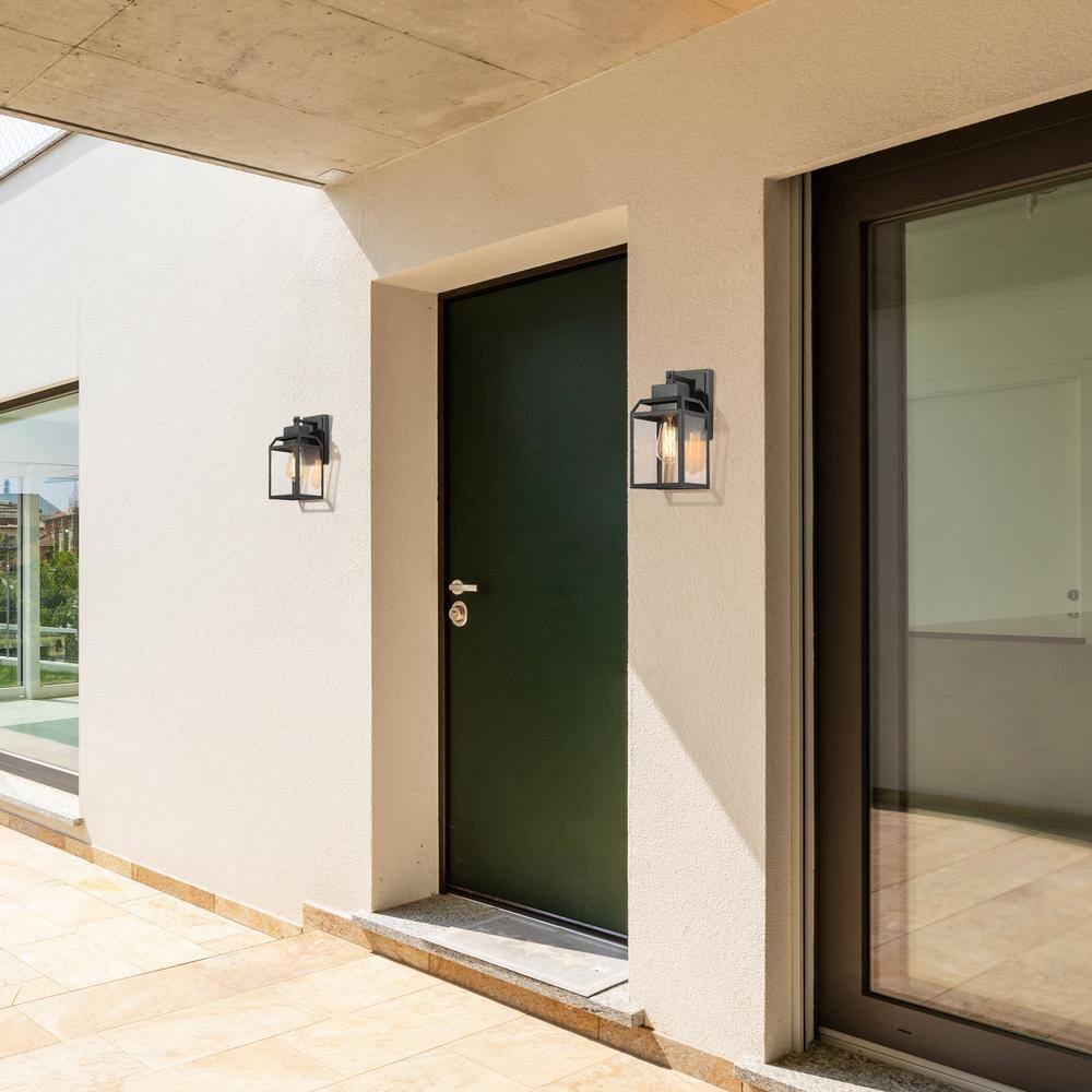 LNC Modern Black Outdoor Wall Sconce 1-Light Cage Rustic Outdoor Garage/Porch Lighting with Clear Glass Panels