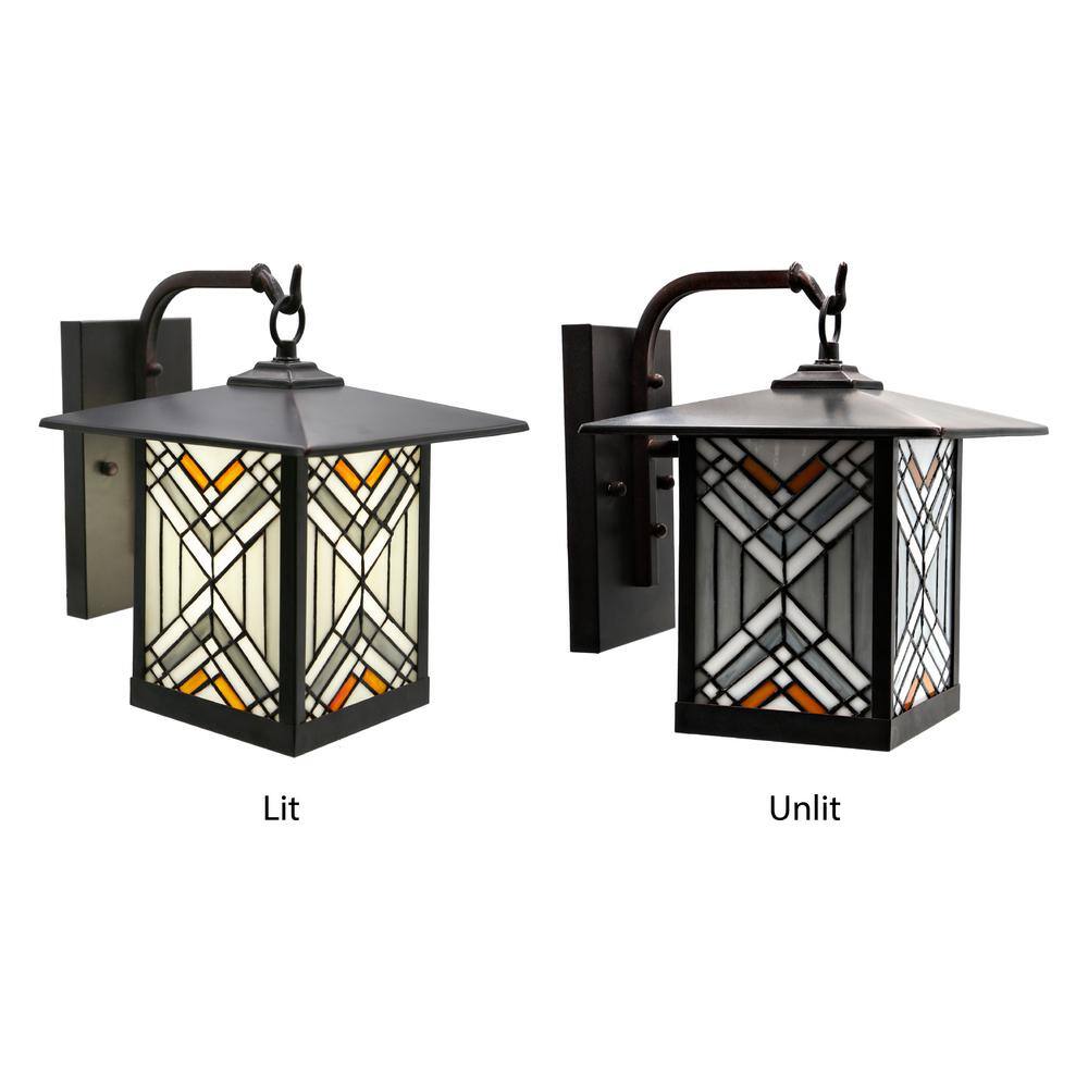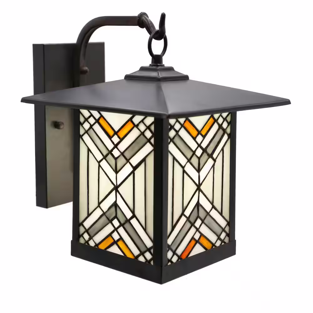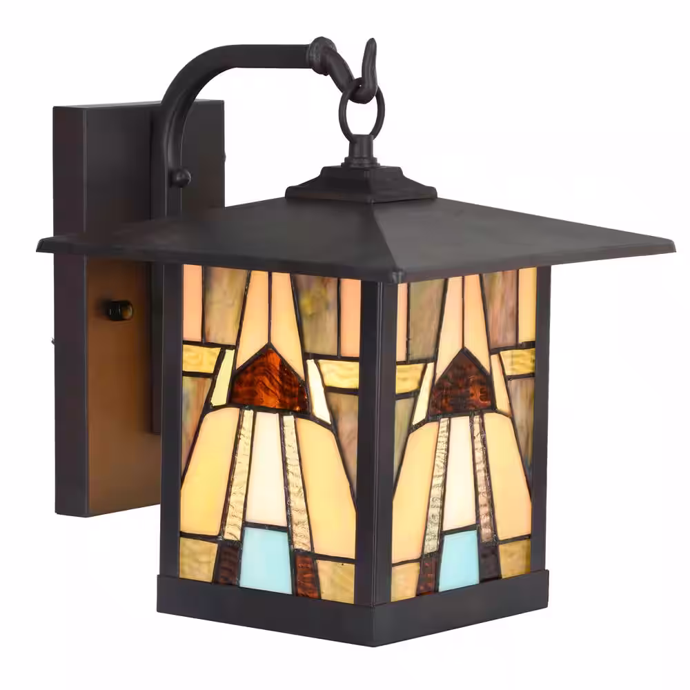River of Goods Regal 1-Light Bronze Outdoor Mission Stained Glass Wall Lantern Sconce