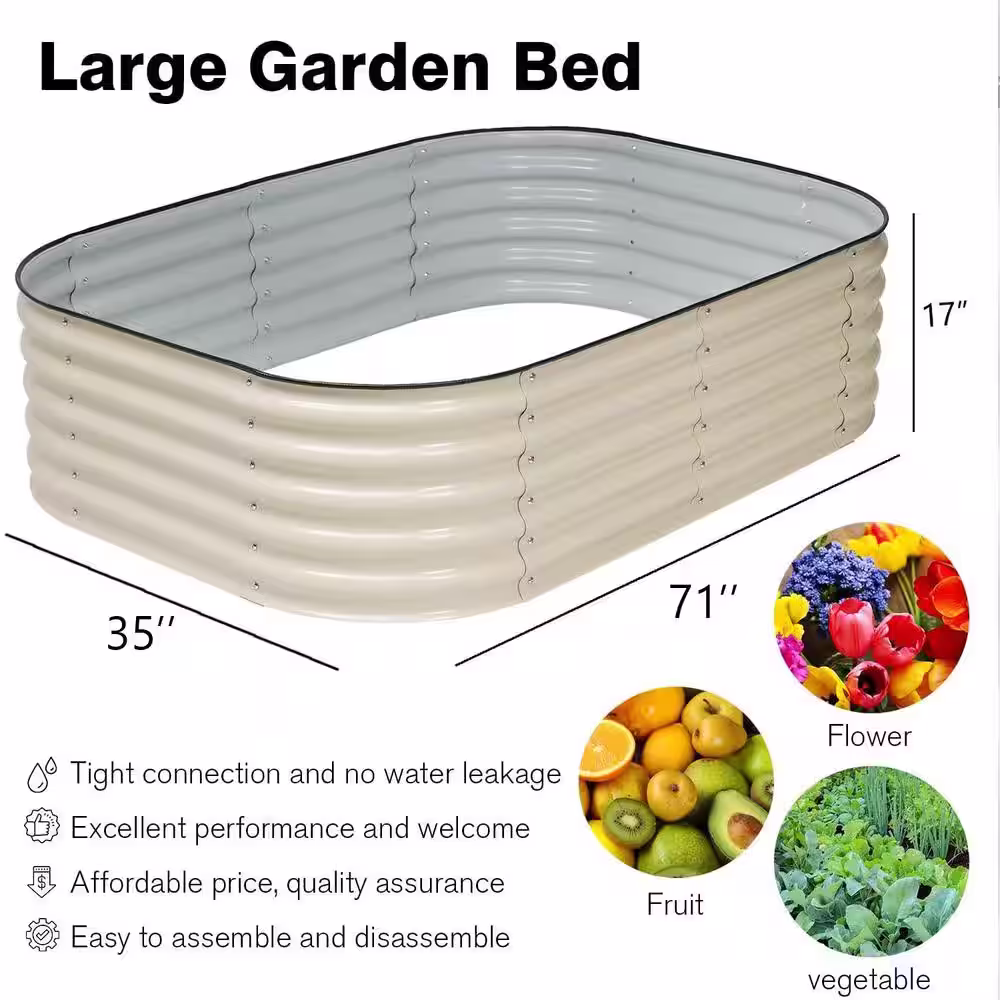 None 71 in. x 35 in. x 17 in. Beige 9-in-1 Modular Metal Raised Garden Bed Kit