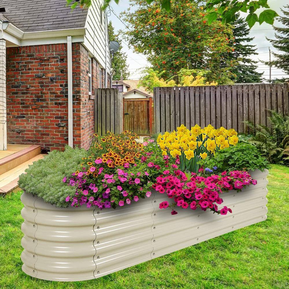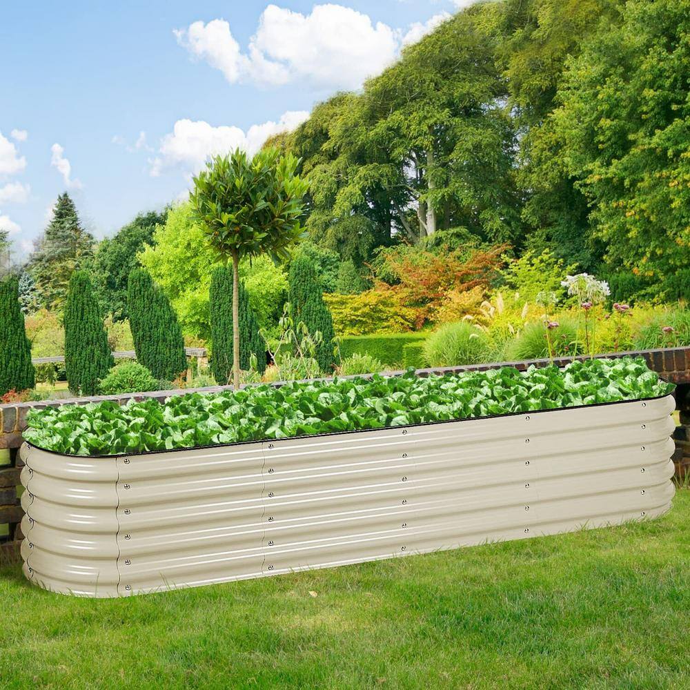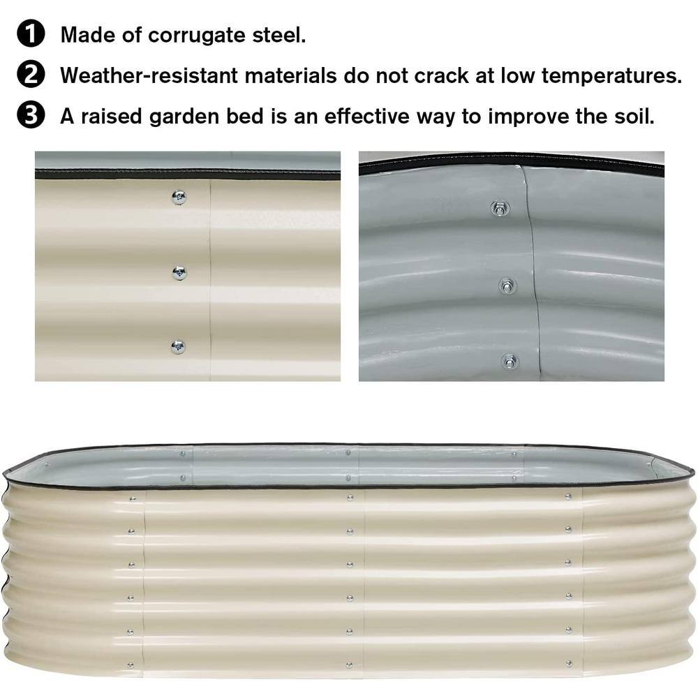 None 8 ft. x 2 ft. x 1.4 ft. 9 in 1 Metal Raised Garden Bed Modular Planter Box Outdoor, Pearl White