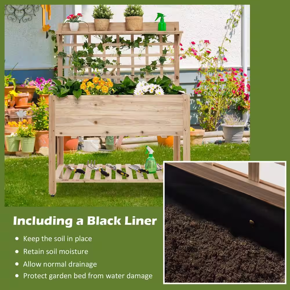 None 41.5 in. Fir Wood Raised Garden Bed with Wheels Trellis and Storage Shelf