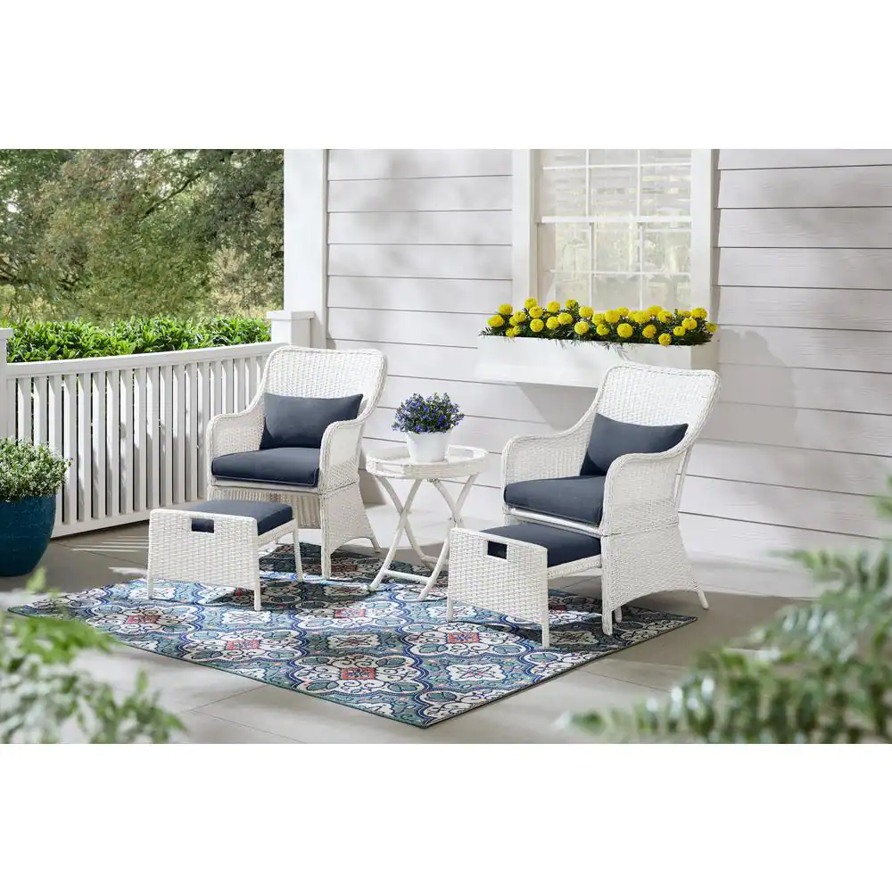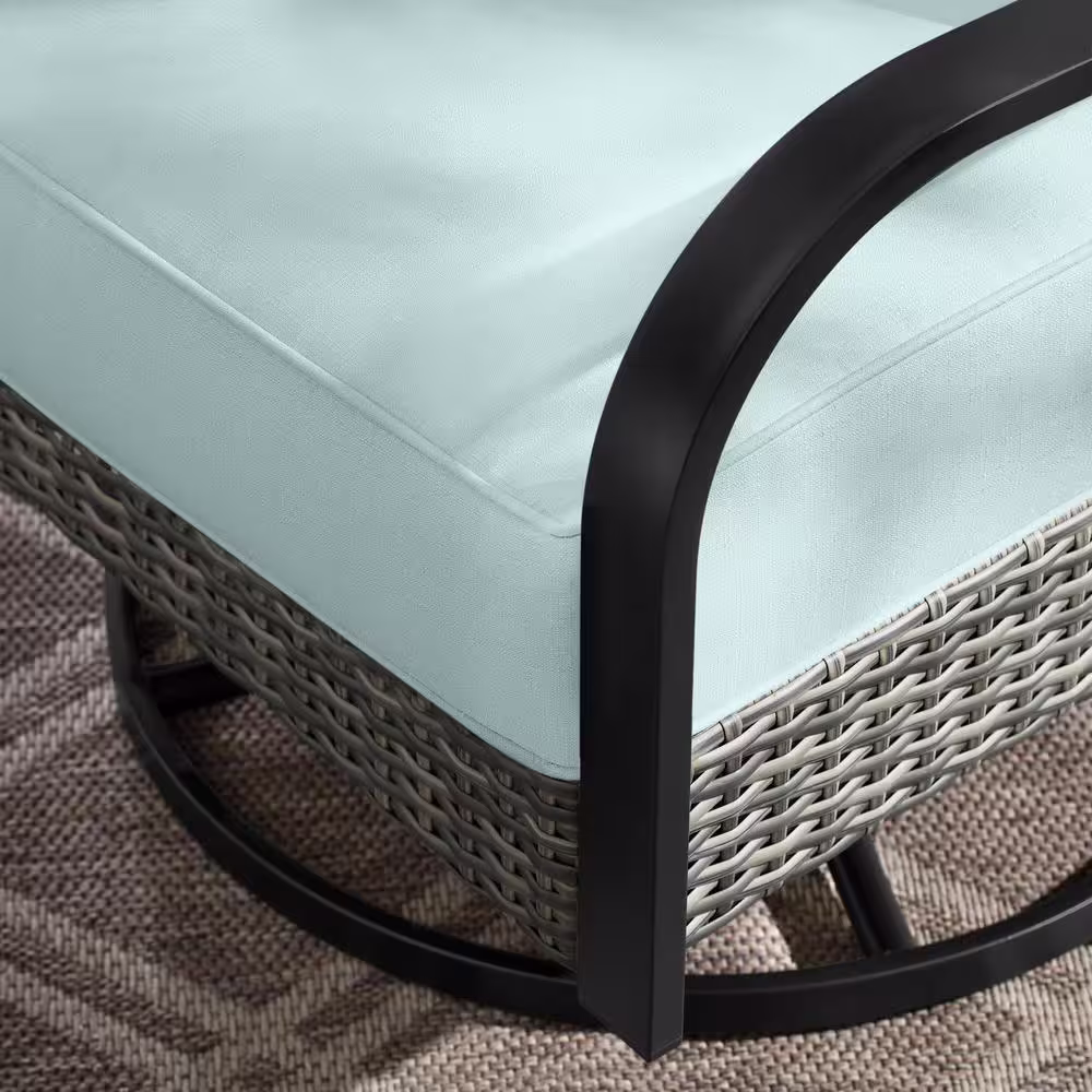 Hampton Bay Garden Hills 5-Piece Wicker Outdoor Chat Set with CushionGuard Sky Blue Cushions