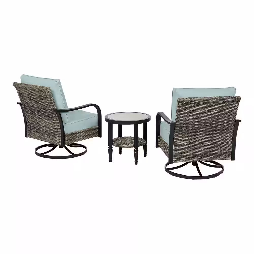 Hampton Bay Windswept 3-Piece Metal Outdoor Bistro Set with CushionGuard Seabreeze Cushions