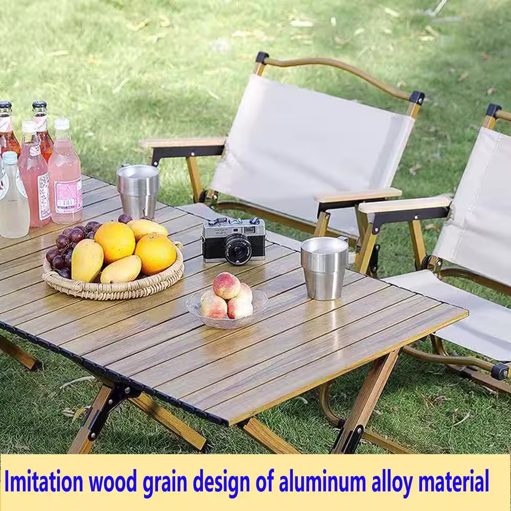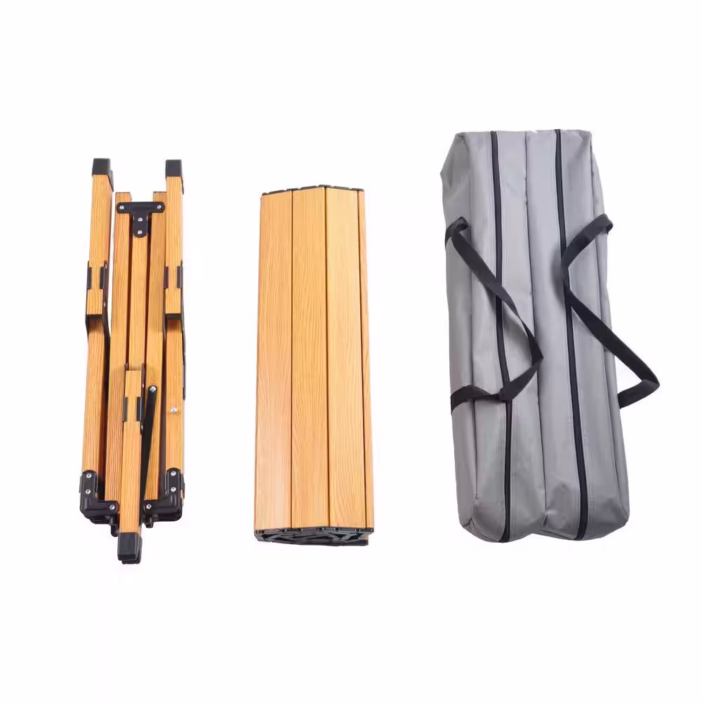 None Brown Rollable Aluminum Alloy Table Top Portable Picnic Table with Folding Solid X-Shaped Frame and Handbag