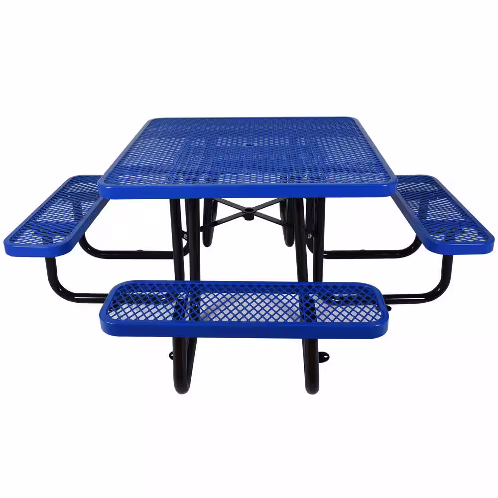 None 46 in. Square Outdoor Steel Picnic Table With Umbrella Pole in Black