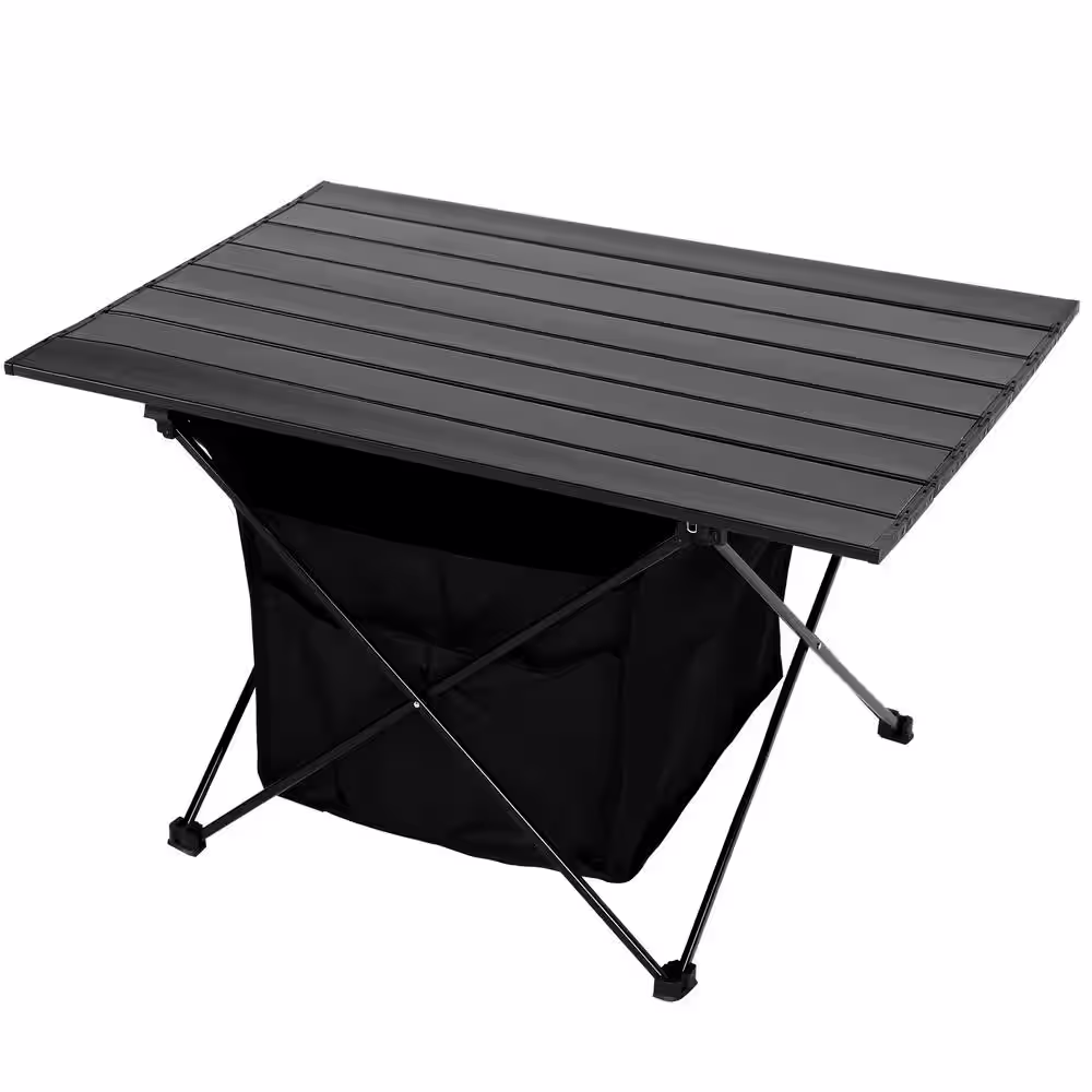 None Portable Picnic Table, Rollable Aluminum Alloy Table Top, with Folding Solid X-Shaped Frame and Handbag