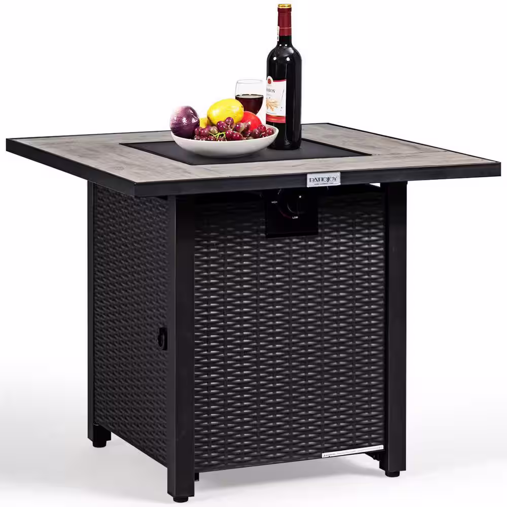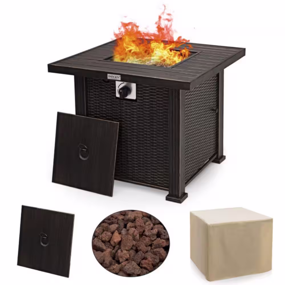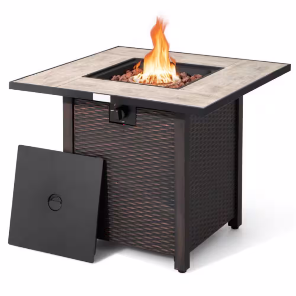 Alpulon 30 in. Outdoor Square Propane Gas Fire Pit Table with Table Cover