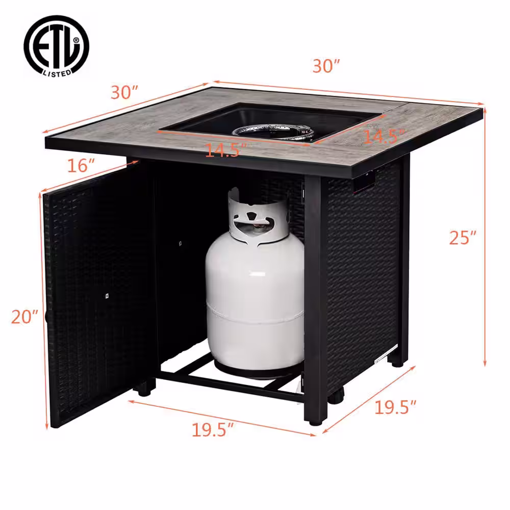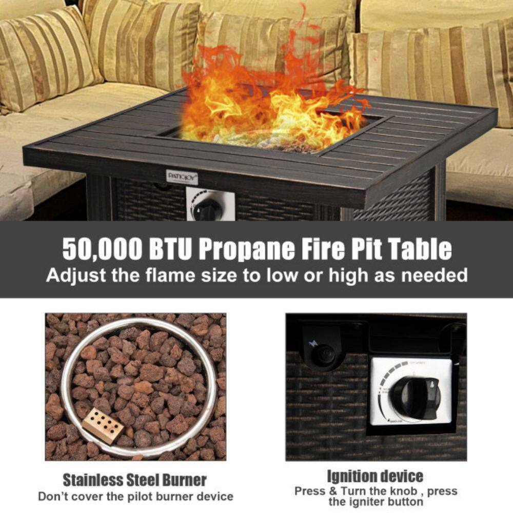 Gymax 30 in. Gas Fire Table 50,000 BTU Square Propane Fire Pit Table Patio Yard