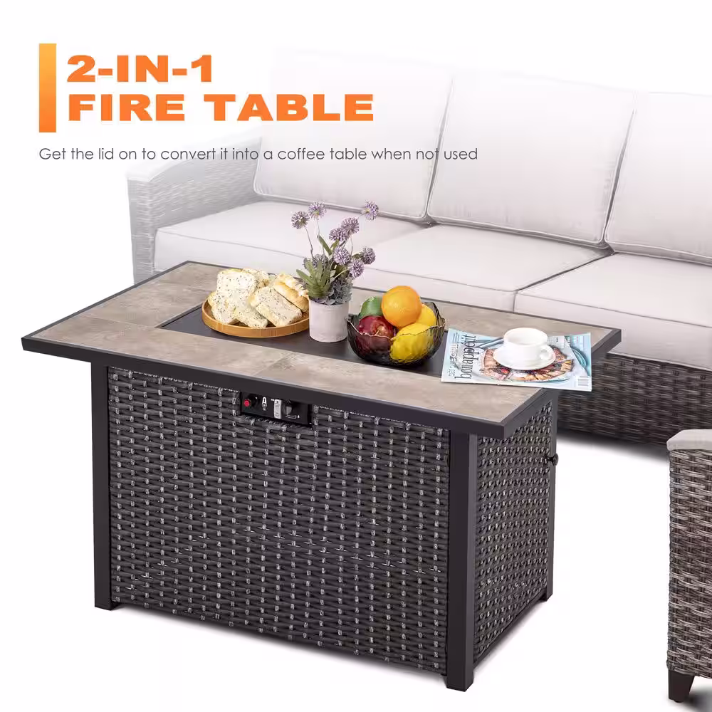 Costway 43.5 in. Rectangle Propane Gas Fire Pit Table Faux Stone w/Lava Rock & PVC Cover