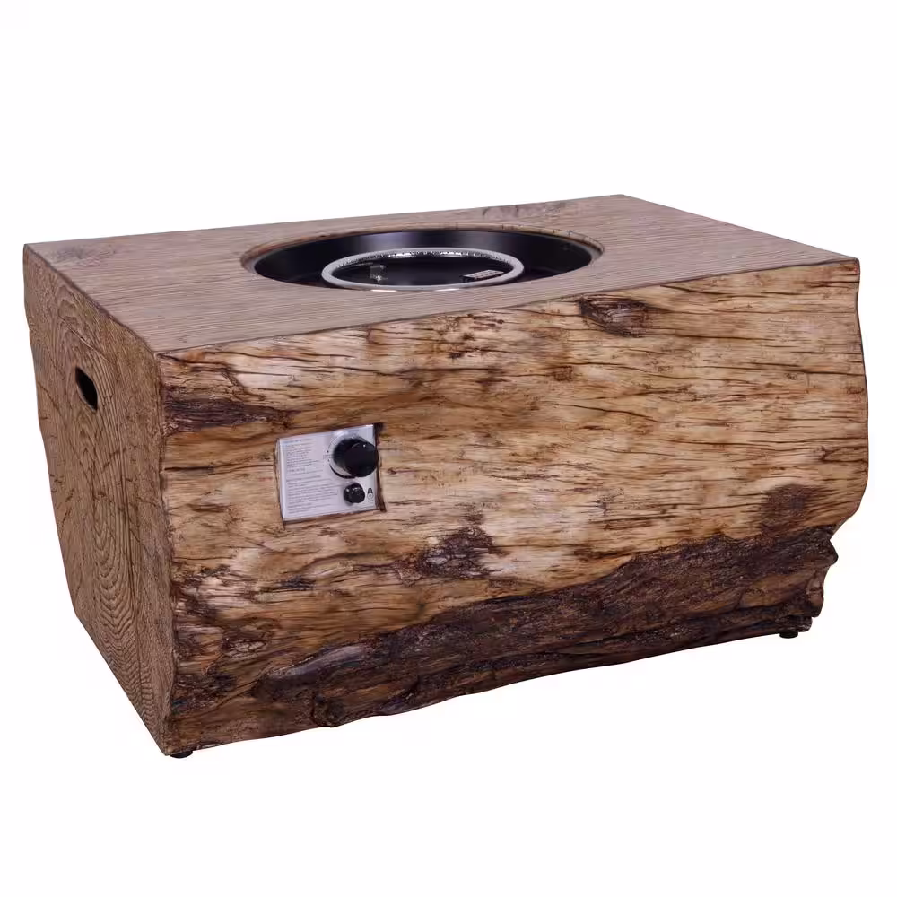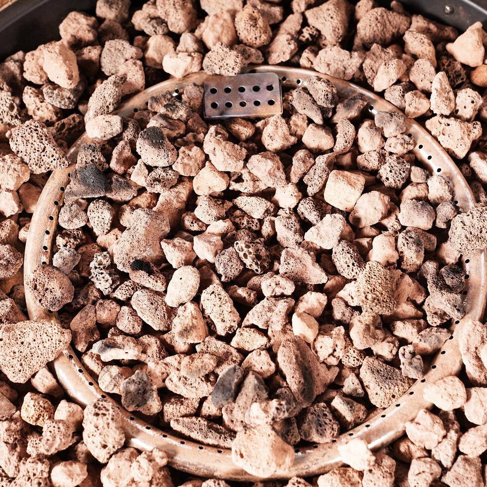 None 40 in. Stone Metal Round Propane Gas Fire Pit Table Wood-Like Surface with Laval Rock PVC Cover