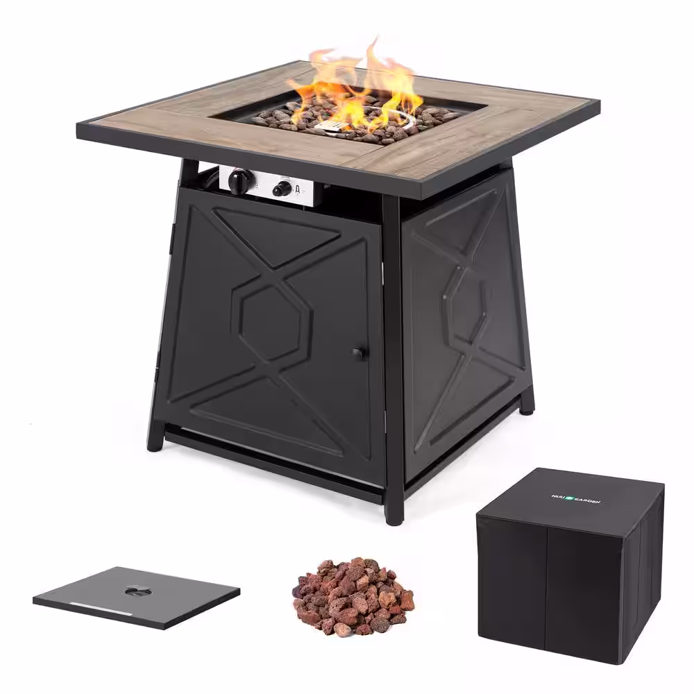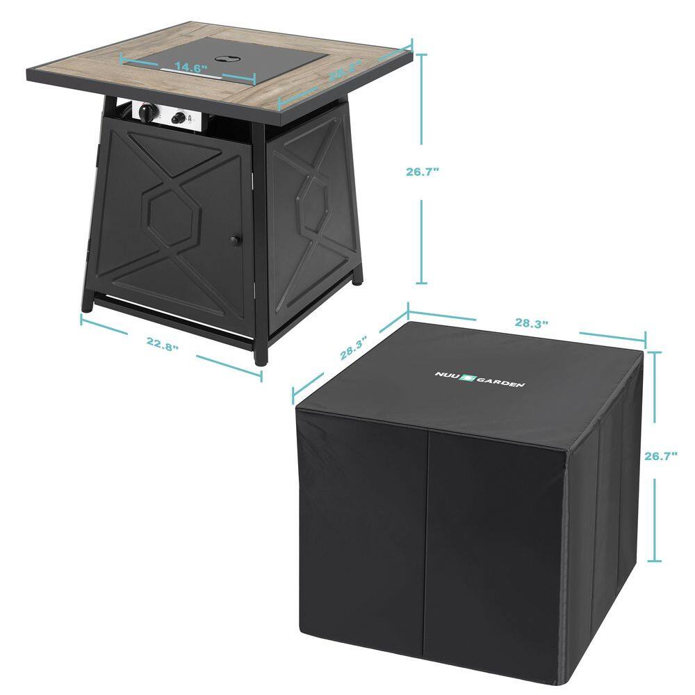 Nuu Garden 28 in. Square Metal Outdoor Propane Fire Pit Table with PVC Cover and Lava Rocks, 50,000 BTU, Black