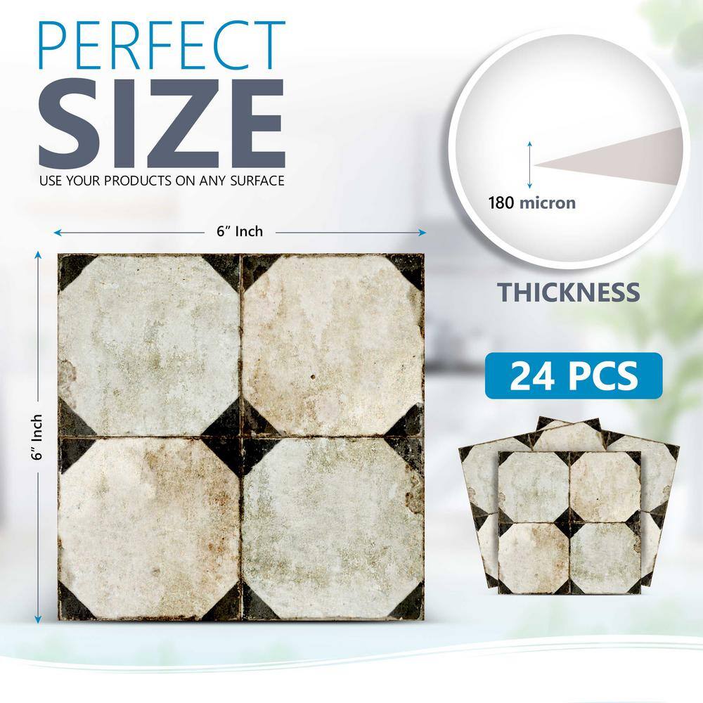 None Grey and Black R27 6 in. x 6 in. Vinyl Peel and Stick Tile (24 Tiles, 6 sq. ft./Pack)