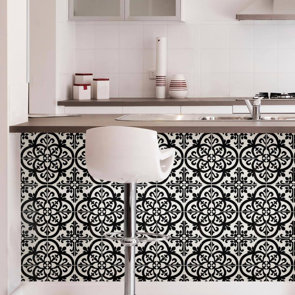 InHome Avignon Black 10 in. x 10 in. x 0.025 in. Resin Peel and Stick Tile Sample (0.69 sq. ft./Pack)