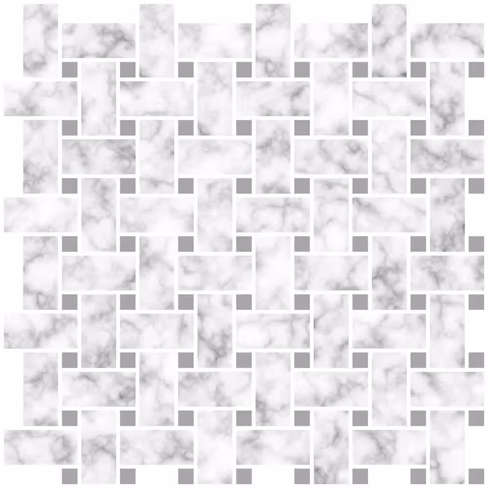 InHome Basketweave 10 in. x 10 in. Off White Carrara Peel and Stick Backsplash Tiles