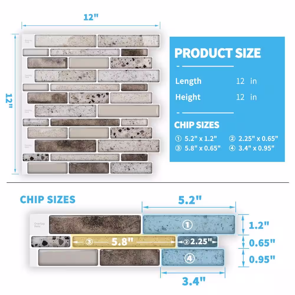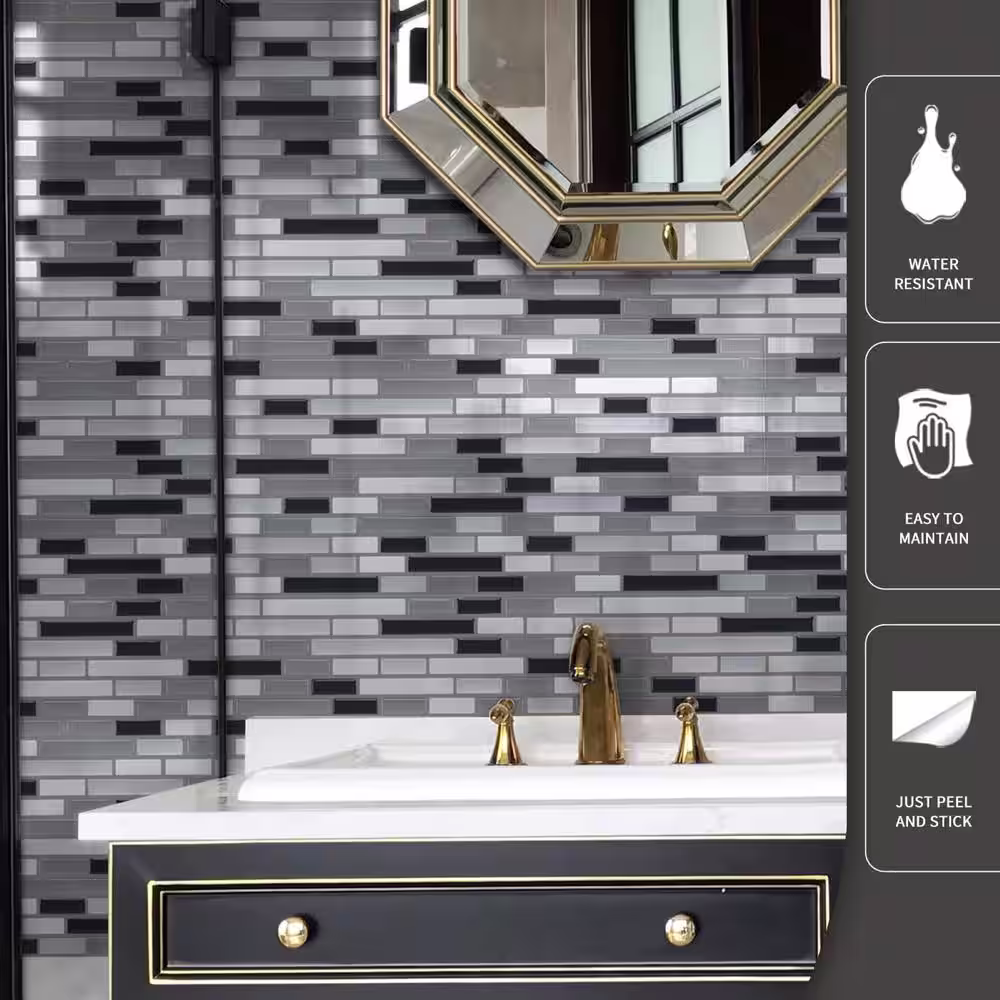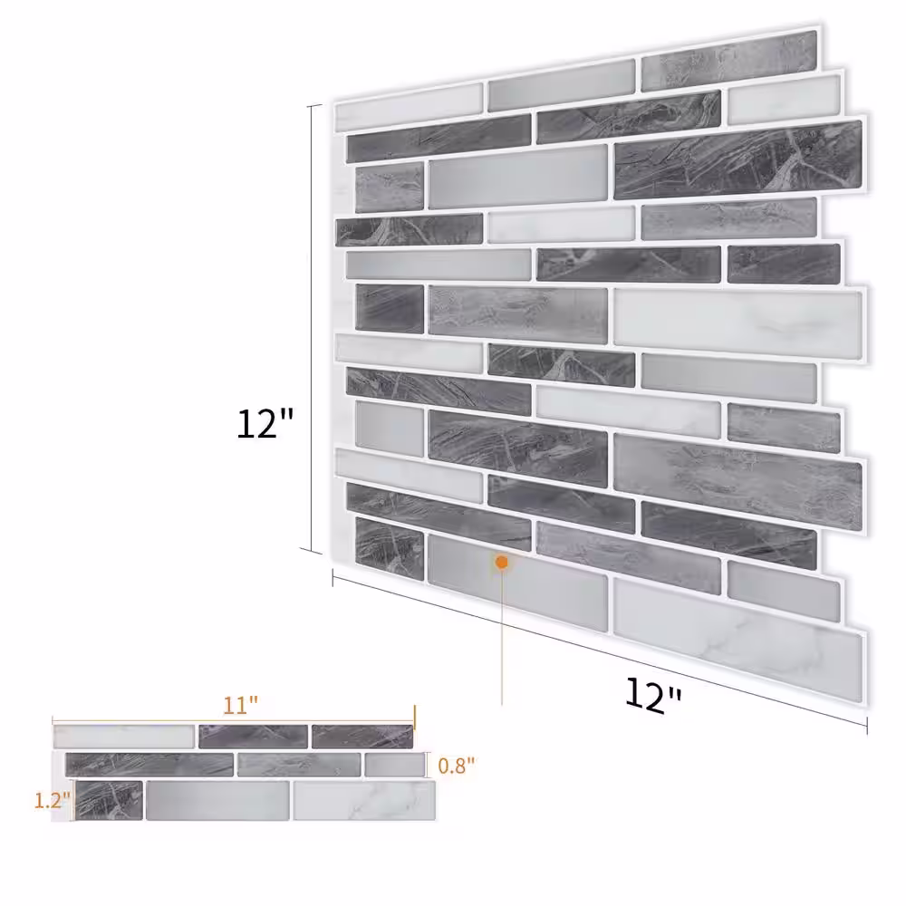Art3d 12 in. x 12 in. Grey Peel and Stick Tile Backsplash for Kitchen (10-Pack)