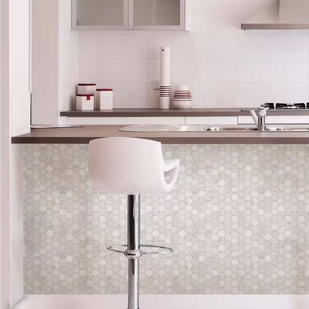 smart tiles Ravenna Blanco White 9.80 in. x 9.74in. Vinyl Peel and Stick Tile (2.48 sq. ft./ 4-pack)