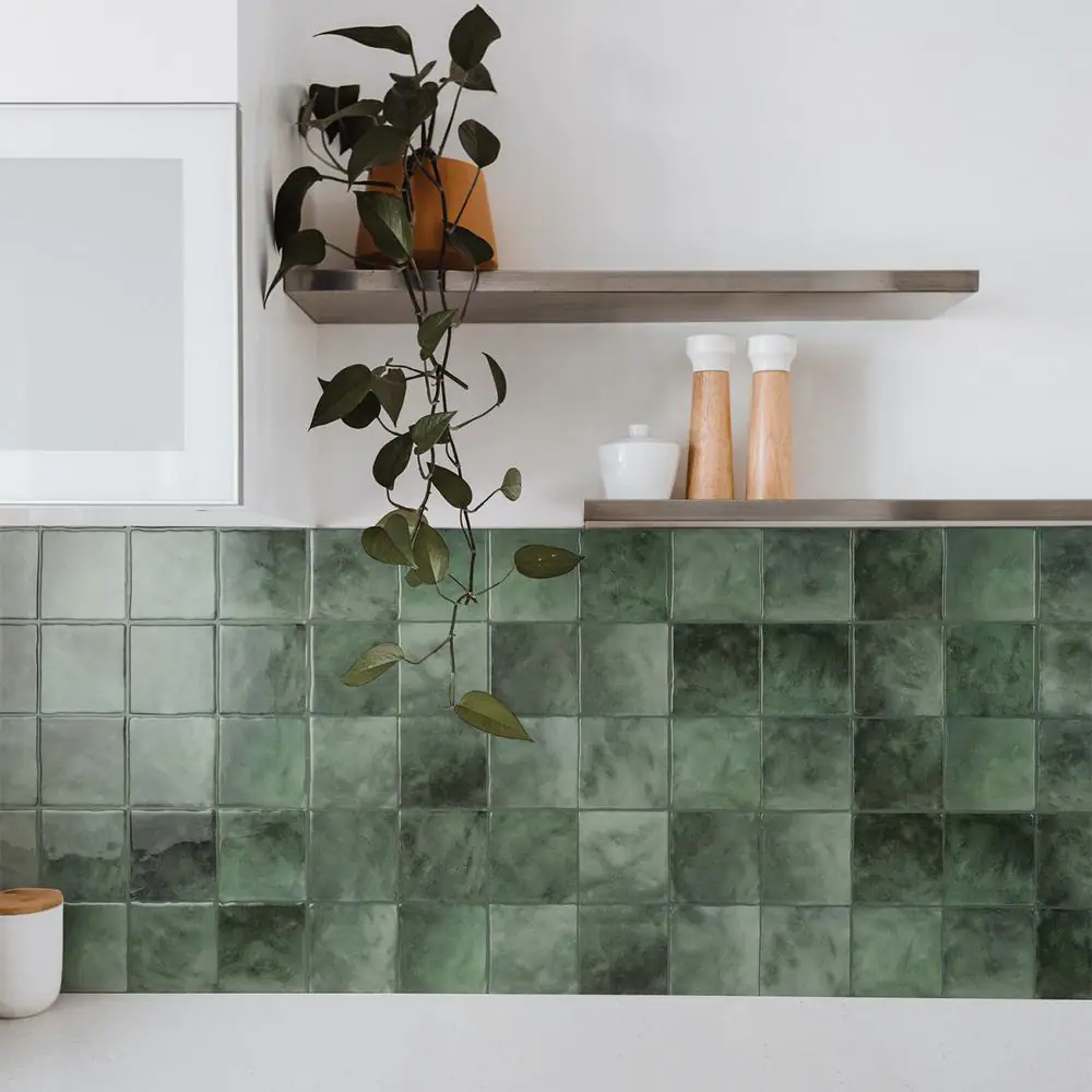 smart tiles Zellige Taza Green 9 in. x 9 in. Vinyl Peel and Stick Tile (2.22 sq. ft./ 4-Pack)