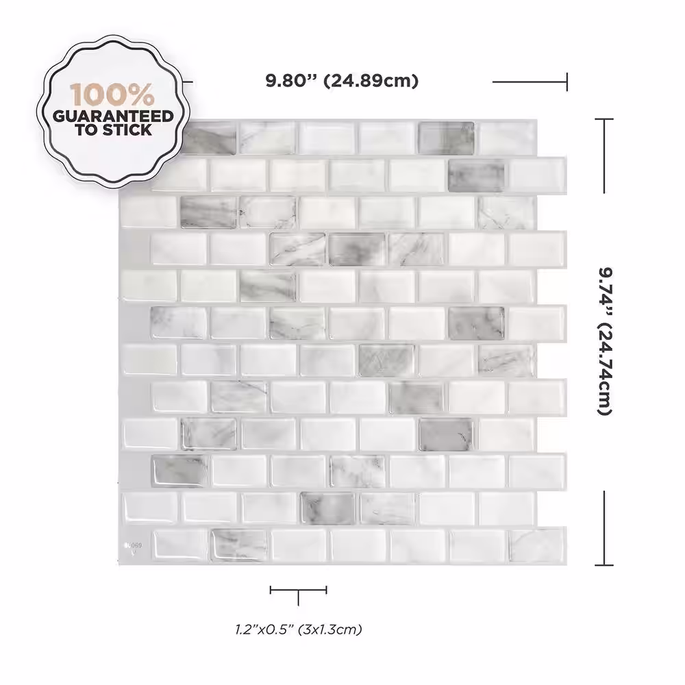 Art3d Brick Light Grey 12 in. x 12 in. PVC Peel and Stick Tile Kitchen Backsplash Mosaic (10 sq. ft./box)