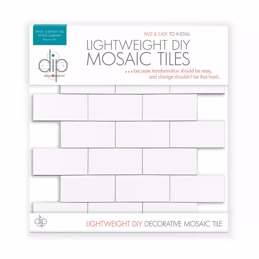 DIP Design Is Personal DIP White Subway Tile 12 in. x 12 in. Self-Adhesive PVC Backsplash