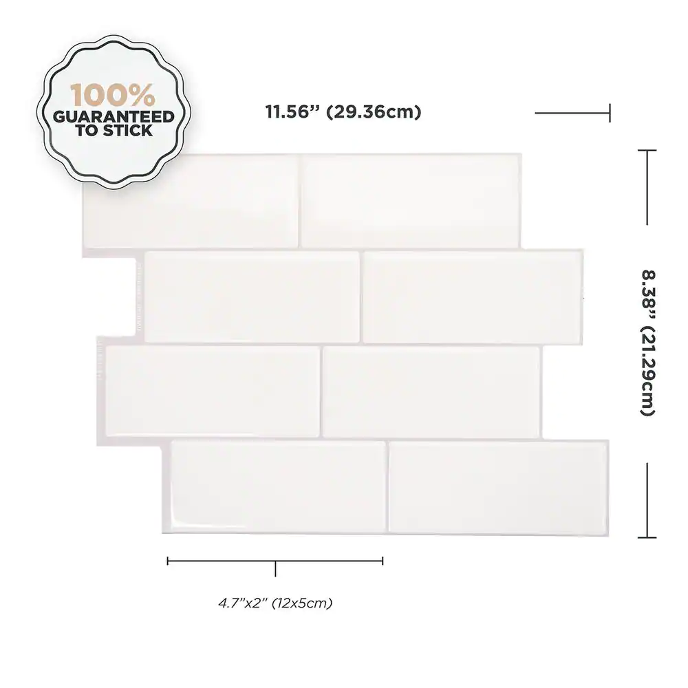 smart tiles Metro Campagnola White 11.50 in. x 8.38 in. Vinyl Peel and Stick Tile (2.21 sq. ft./ 4-pack)