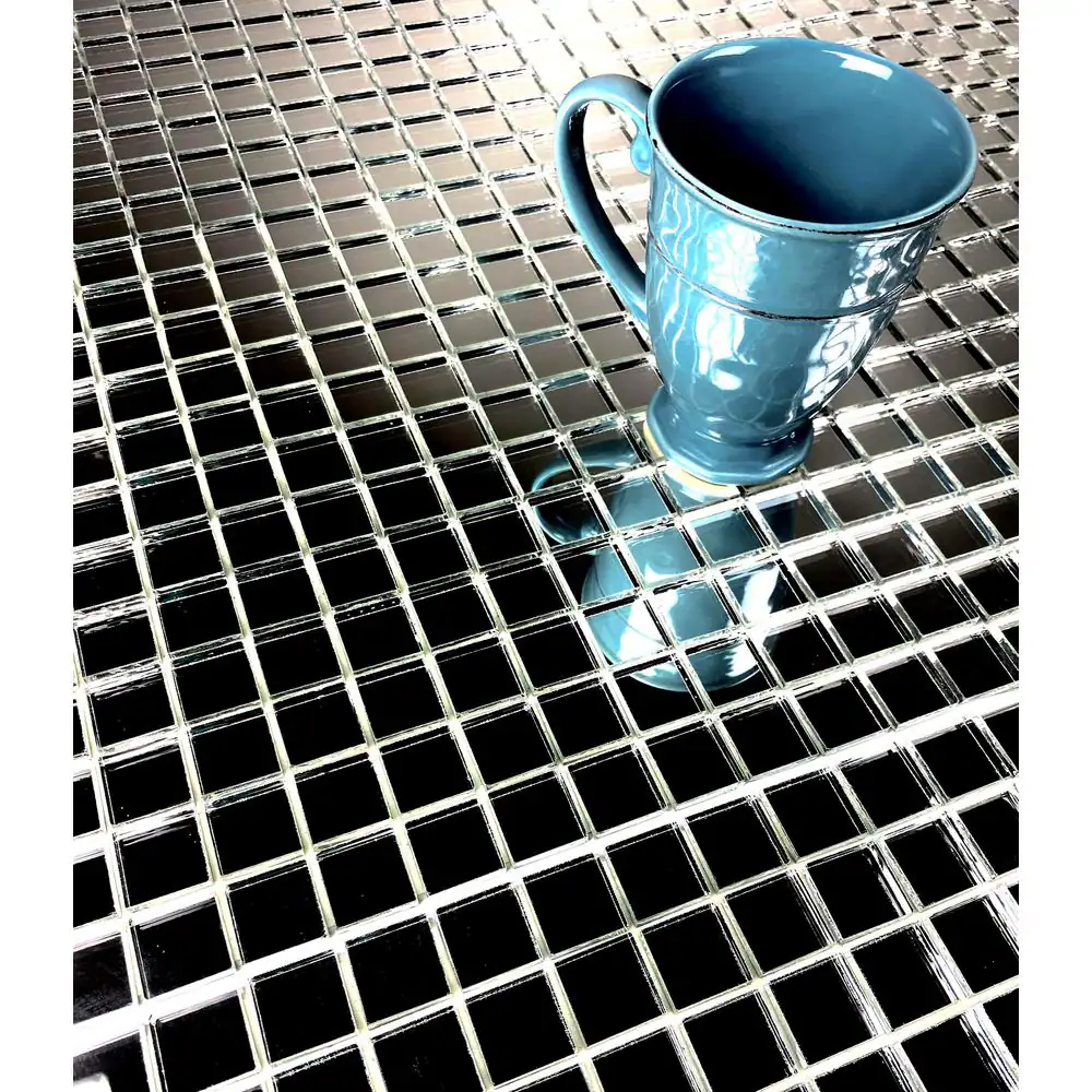 ABOLOS Reflections Silver Square Mosaic 12 in. x 12 in. Glass Mirror Peel and Stick Tile (11 sq. ft./Case)
