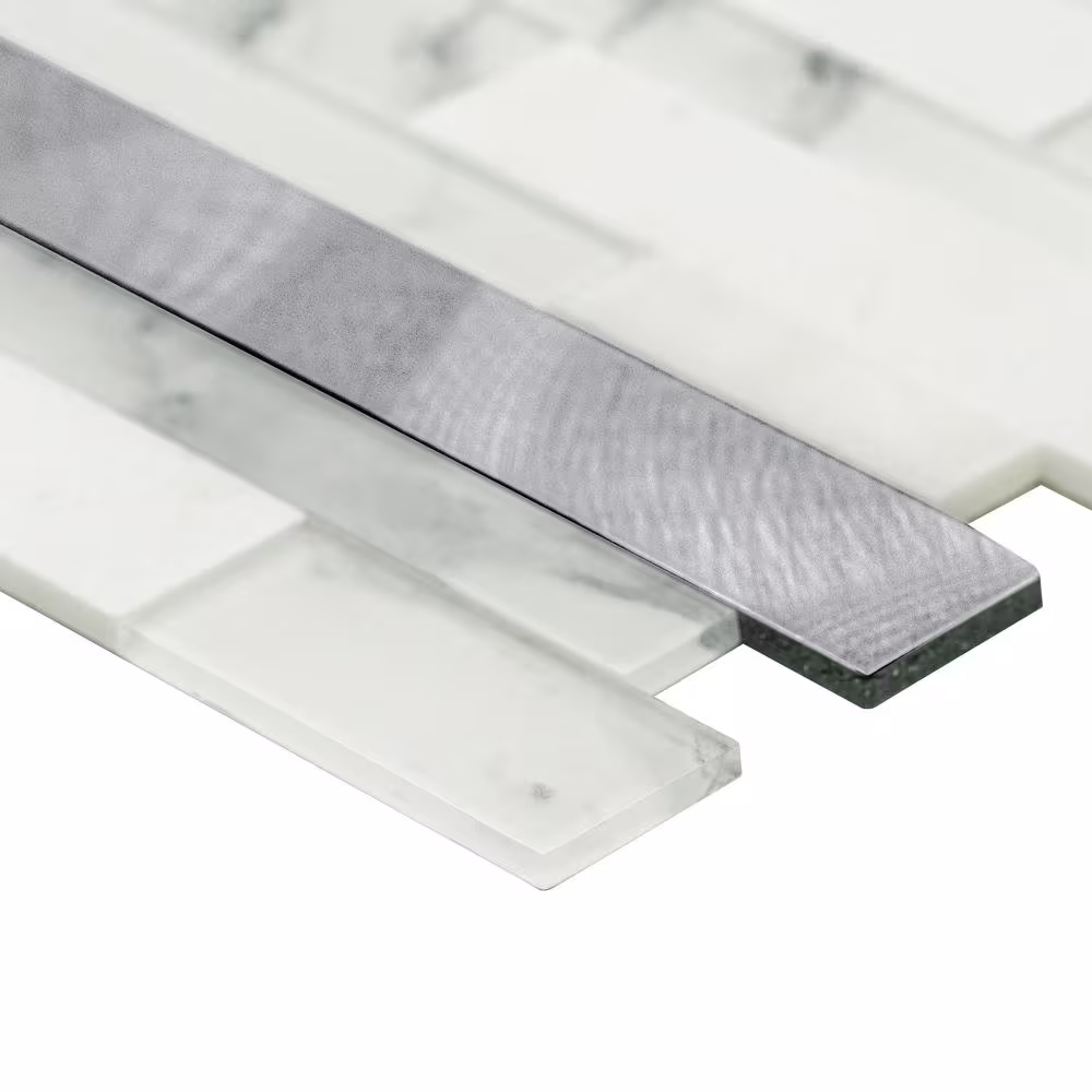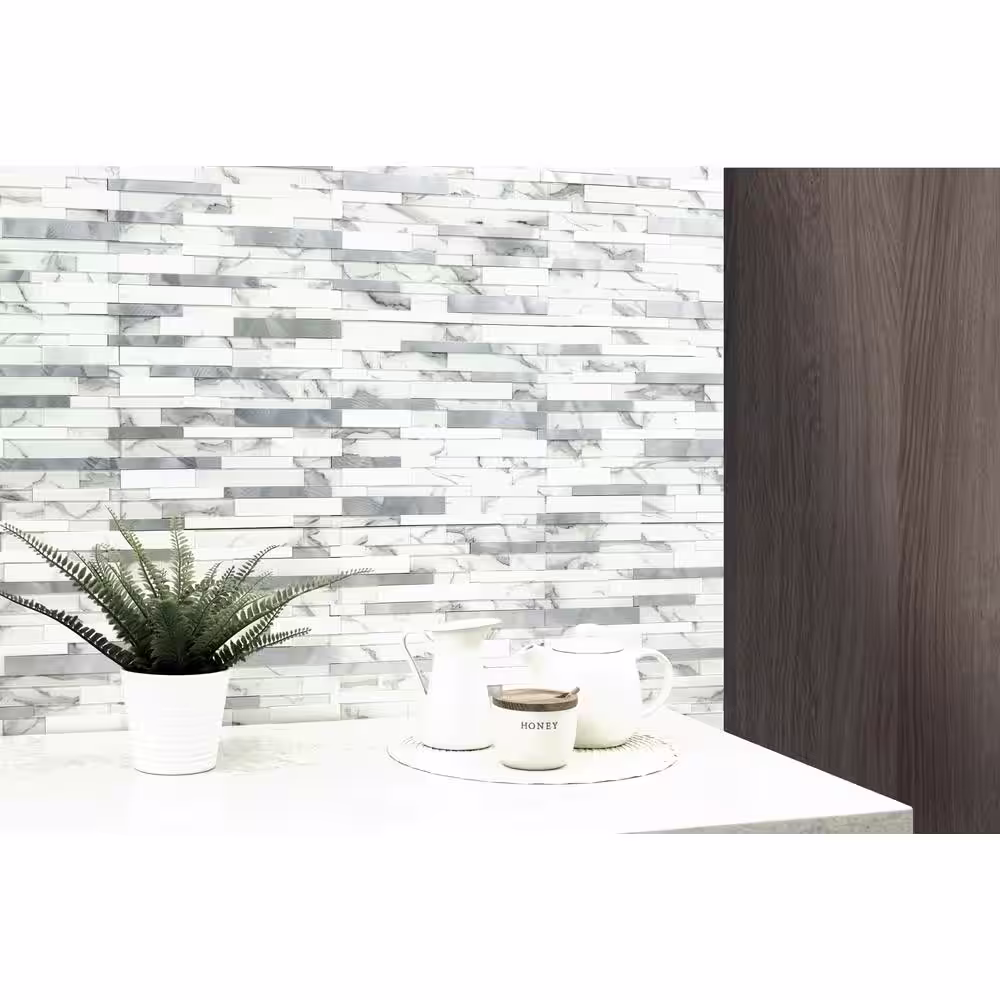 Aspect Collage 11.75 in. x 6 in. Metal and Composite Peel and Stick Backsplash in Marble Shine (2-Pack)