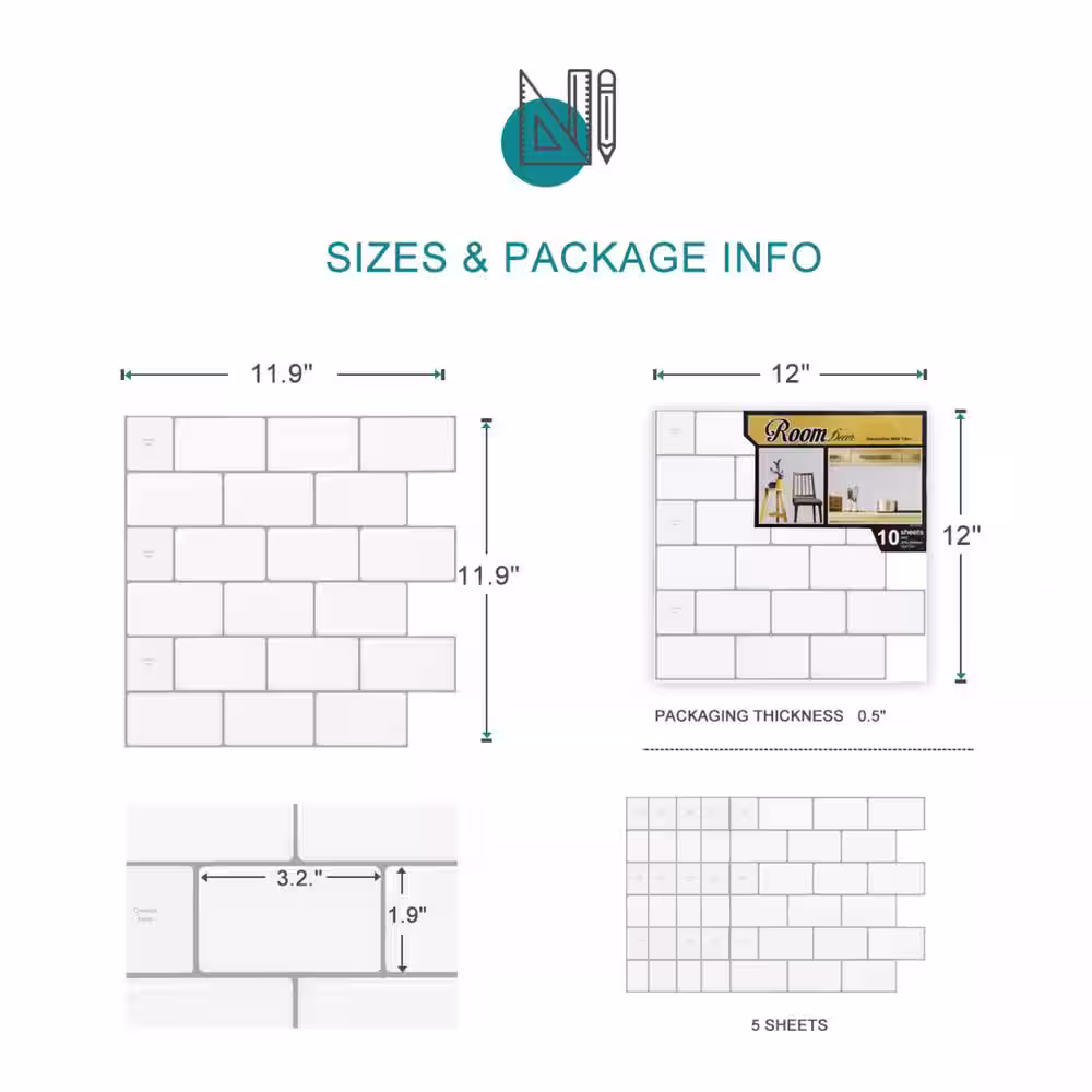 Art3d 12 in. x 12 in. Peel and Stick Vinyl Subway Backsplash Tile in White (10-Pack)