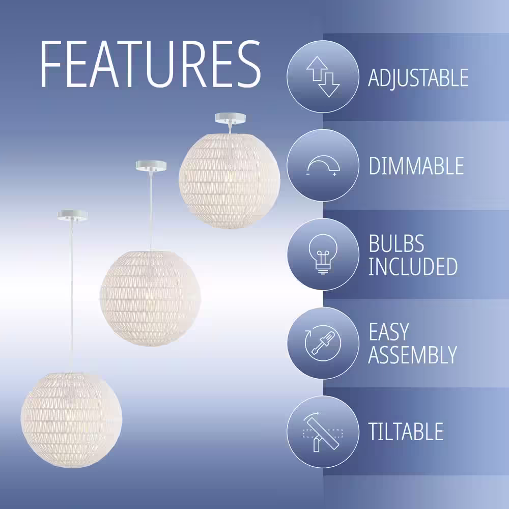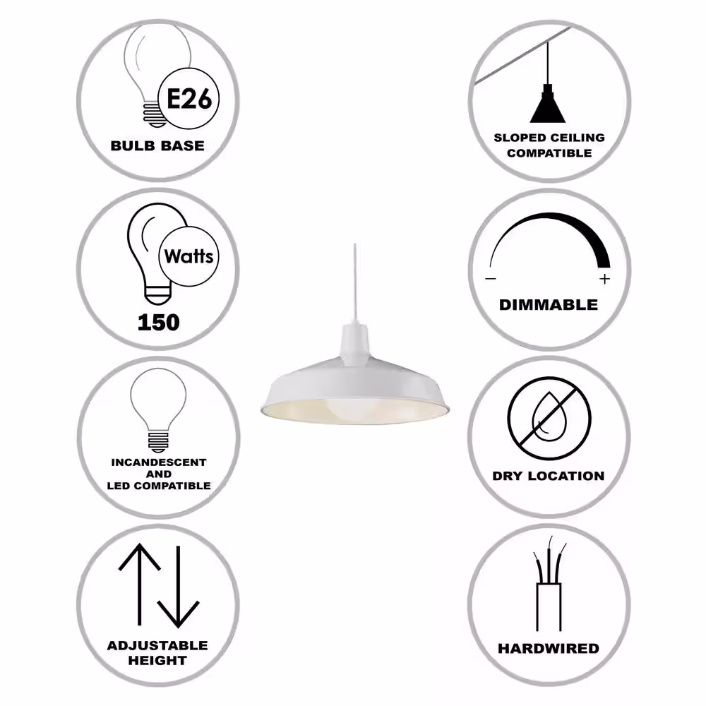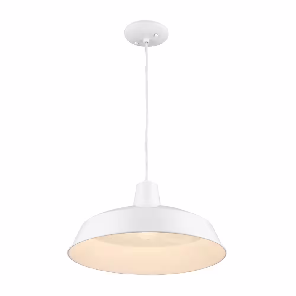 Bel Air Lighting Sherman 1-Light White Pendant Light Fixture with Metal Shade